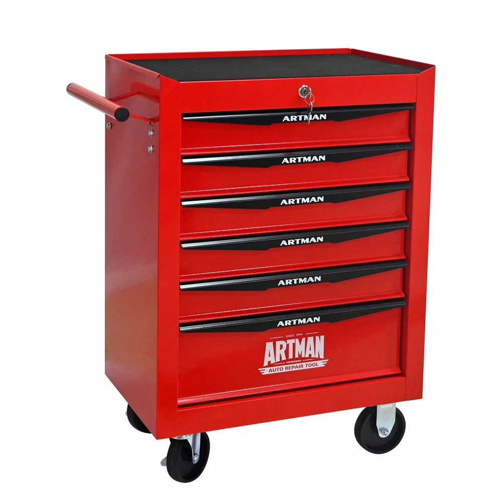 20" Rolling Metal Tool Chest w/6 Ball Bearing Drawers, Steel Storage Cabinet Red Features 6 drawers with wheels multi-purpose tool car, Red+Black color with more durable The tool box is also lockable and can be used as a removable, attachable and mobile case The opening and closing of the drawers of the tool cabinet is very gentle thanks to the ball-bearing drawers The robust and powder-coated steel construction is used for high wear resistance. This assembly trolley has 4 steering wheels, 2 of which with parking brakes, so you can move the trolley freely in the garage, but also stop in one place Smooth steel countertops are cleaner and more durable. Descriptions 4 Universal Wheels With swivel casters could maneuver easily around work area. The wheels have locking mechanisms to prevent the tool cabinet from moving around on its own while in use. One Side with Pull Handle This product comes with a handle on one side, which not only helps to push and pull it more, but allows you to move it more freely 6 Drawers with Wheels Drawers can easily accommodate needed items such as folders, notebooks, tools, etc. With Key Locking Protecting the tools and items stored inside Product Information Proudct Name 6 Drawers Workshop Tool Trolley Material Cold Rolled Steel Surface Finish Powder Coating Powder Coating 4" Casters (2PCS with brake and 2PCS without brake) Product Size (with wheels) 20.63*12.99*30.59INCH Product Size 20.63*12.99*25.83ICNH Package Size 23.31*15.35*28.66INCH Color Red+Black Net Weight 51.59LBS Gross Weight 56LBS