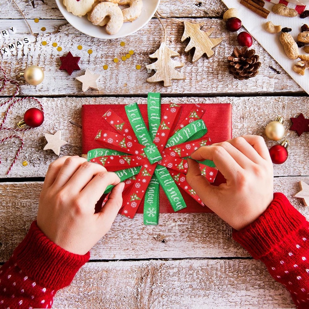 About this item Christmas theme ribbon:Our Christmas ribbon includes 20 Roll ribbons,featuring with classic Christmas theme elements,Vibrant red and green colors in rich Christmas designs,great for accenting your gifts and Christmas decor Size:Each Christmas Ribbon measures 3/8 inch in wide by 5 yards in length,100 yards long in total,enough ribbons to meet your holiday gift-wrapping and party-decorating needs Ideal for gift wrapping:great Christmas ribbon for gift wrapping, simply tie onto your gift boxes or bags,make gift-giving more festive with these funny holiday-themed Christmas ribbon Quality material:Our Christmas ribbon for crafts are made of quality polyester grosgrain, soft,durable,colorful printed and not easy to fade,adds color and texture to your Christmas presents for a pretty presentation Wide applications:Our 3/8 inch Christmas ribbon also can be used for crafts,sewing projects,hair bow,gift bow,party favors,decorating and more.The Christmas ribbon adds a finishing touch to gifts or crafts projects,adds a joyful atmosphere to Christmas › Color: Red Material: Polyester Product Dimensions: 180"L x 0.38"W Style: Classic Occasion: Christmas Pattern: Plaid, Snowflake Item Weight: 0.23 Kilograms Fabric Type: Polyester