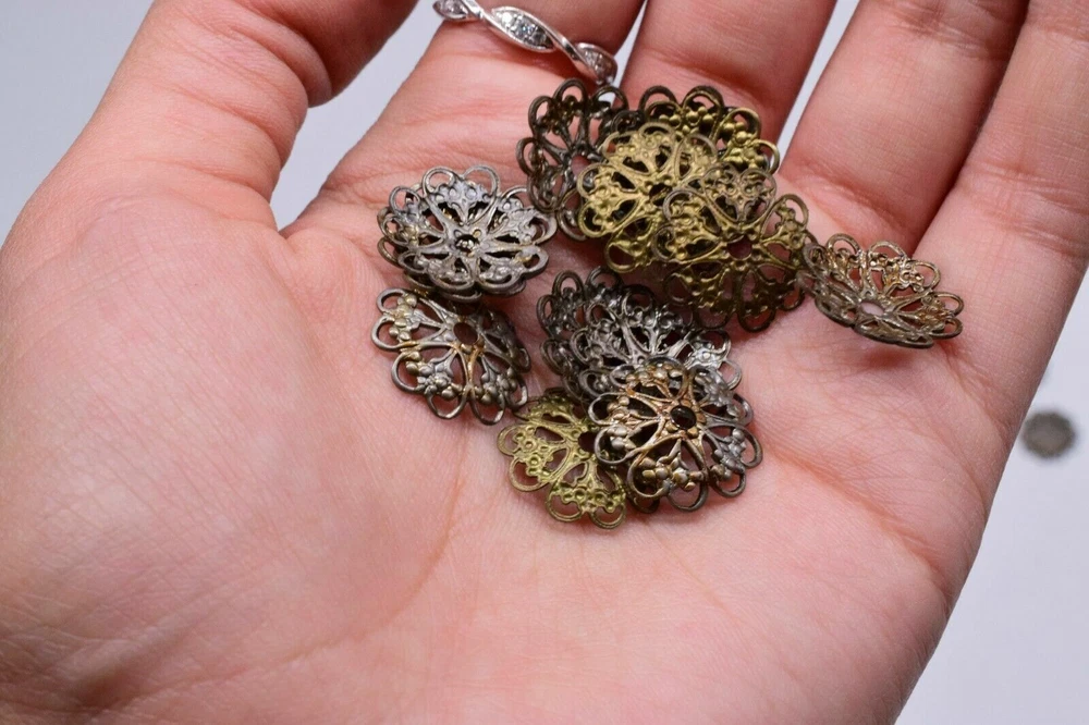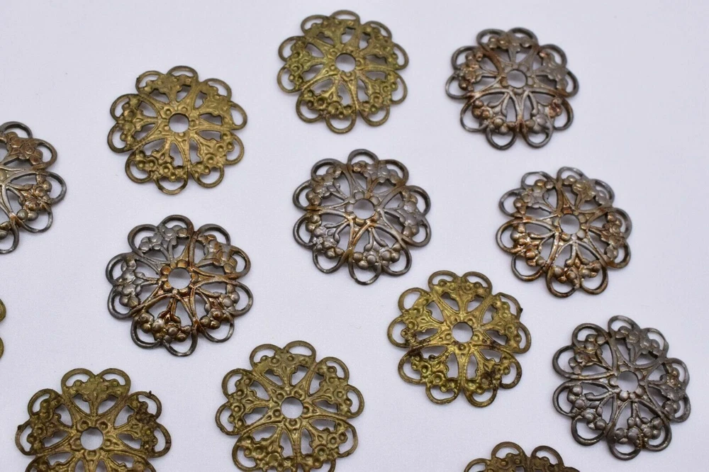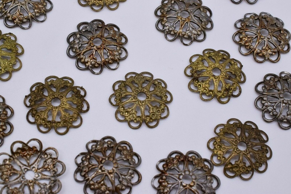 20 pieces 17 mm Please view all pictures for better judgment. These pieces are tarnished/ discolored Different quantities available, view other listings in our store