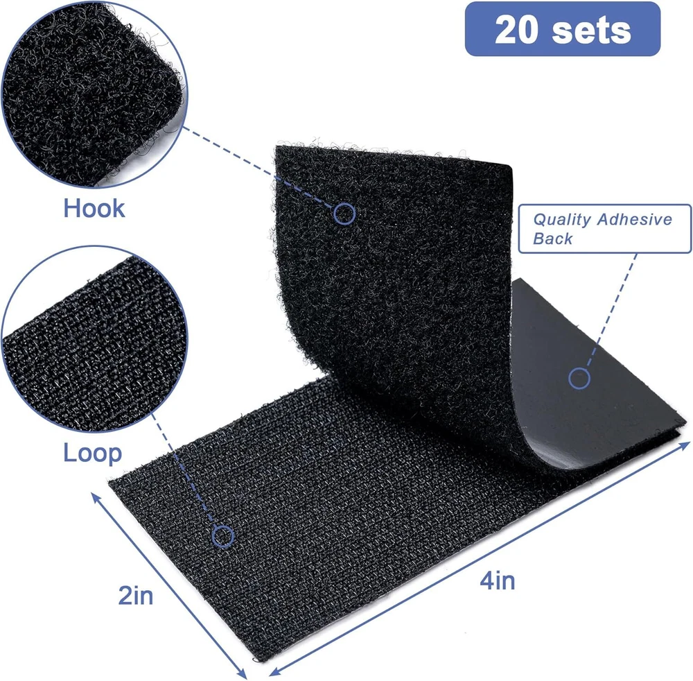 20 Sets Hook and Loop Strips with Adhesive, 2x4 inch Strong Double Sided Tape He