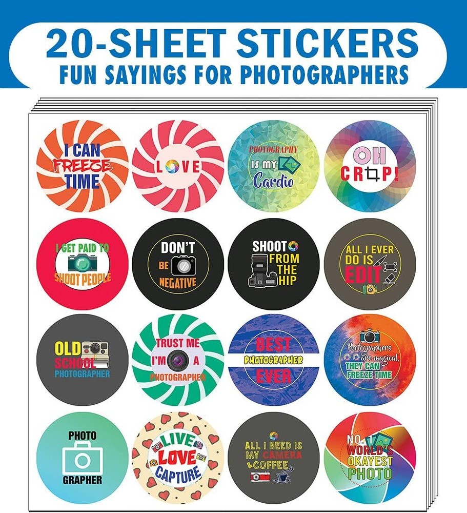 16 UNIQUE DESIGNS INSPIRING STICKERS FOR YOUR DIY PERSONALIZED DECORATIONS - I am a Photographer Stickers (20-Sheets x 16 Designs). These colorful and uniquely inspiring round shaped stickers are the best tool for DIY decoration and personalization of your belongings. GREAT STOCKING STUFFERS, TEACHING SUPPLEMENTARY MATERIALS, AND GIVEAWAY - Great stocking stuffers gifts for Photo Lovers, Artists, Designers, Men & Women. A perfect design to give during guidance sessions, classroom activities, school giveaways, birthdays, anniversaries, family day, and any other special occasions. MADE WITH DURABLE AND WATERPROOF MATERIALS - There is a lamination or coating to make the stickers high water resistant, and WILL NOT fade from the water. The stickers can stick it anywhere you like, and it sticks there and lasts a long time. A COLORFUL AND DECOR STICKER DECAL - Each sheet with 16 individual round stickers. There are 20 Sheets, with a total of 320 pieces of stickers. STICKER SIZE: 1.5 INCHES IN DIAMETER I am a Photographer Stickers (20 Sets X 16 Designs) COLORFUL AND COLLECTION OF TEXT STICKERS • Well designed. • Very encouraging. • Self-adhesive. I am a Photographer Stickers (20 Sets X 16 Designs) are super fun to collect; you can't have just one! That's why you will find a selection of stickers right here. Each package comes with different stickers in a variety of designs. Stick them here, stick them there, stick them everywhere! Everyone will love these self-adhesive stickers. These colorful stickers are perfect for any adults and these come with very inspiring messages and bright pictures. A fun, inexpensive way to add a decorative, notes, and stationery. Delight yourself with uplifting messages designs that are very encouraging. I am a Photographer Stickers (20 Sets X 16 Designs) perfect for giveaways, behavior incentives, prizes! These stickers are acid-free, nontoxic, and safe for use on photos. This product comes with a 60 days money back guarantee. You can return them to us for a full refund.