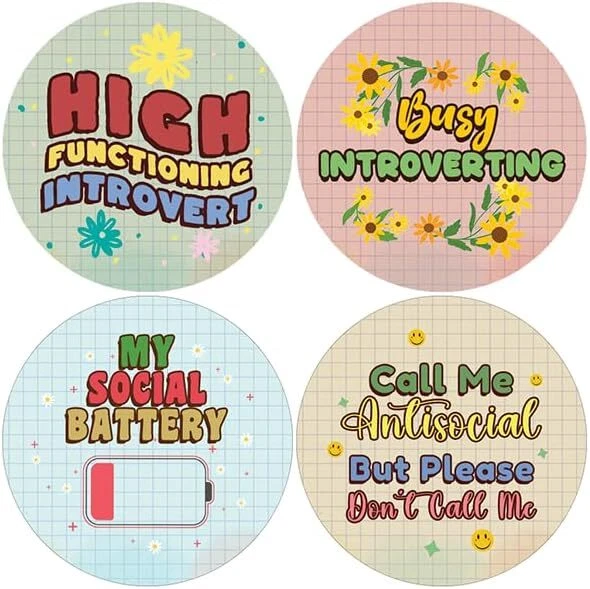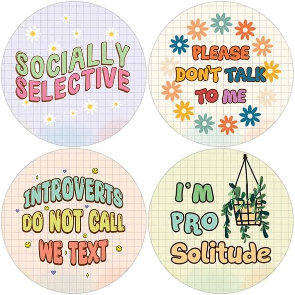 16 UNIQUE DESIGNS INSPIRING STICKERS FOR YOUR DIY PERSONALIZED DECORATIONS - Creanoso Relatable Introvert Stickers (20-Sheets). These colorful and uniquely inspiring round shaped stickers are the best tool for DIY decoration and personalization of your belongings. GREAT STOCKING STUFFERS , TEACHING SUPPLEMENTARY MATERIALS, AND GIVEAWAY - Great stocking stuffers gifts for Boys, Girls, Teens, Kids. A perfect design to give during classroom school activities, home schooling,birthdays, anniversaries, family day, and any other special occasions. MADE WITH DURABLE AND WATERPROOF MATERIALS - There is a lamination or coating to make the stickers high water resistant, and WILL NOT not fade from the water. The stickers can stick it anywhere you like, and it sticks there and lasts a long time. A COLORFUL AND DECOR STICKER DECAL - Each sheet with 16 individual round stickers. There are 20 sheets , with a total of 320 pcs of stickers. STICKER SIZE: 1.5 INCHES IN DIAMETER Relatable Introvert Stickers (20 Sets X 16 Designs) COLORFUL AND COLLECTION OF TEXT STICKERS • Well designed. • Very encouraging. • Self-adhesive. Relatable Introvert Stickers (20 Sets X 16 Designs) are super fun to collect; you can't have just one! That's why you will find a selection of stickers right here. Each package comes with different stickers in a variety of designs. Stick them here, stick them there, stick them everywhere! Everyone will love these self-adhesive stickers. These colorful stickers are perfect for any adults and these come with very inspiring messages and bright pictures. A fun, inexpensive way to add a decorative, notes, and stationery. Delight yourself with uplifting messages designs that are very encouraging. Relatable Introvert Stickers (20 Sets X 16 Designs) perfect for giveaways, behavior incentives, prizes! These stickers are acid-free, nontoxic, and safe for use on photos. This product comes with a 60 days money back guarantee. You can return them to us for a full refund.