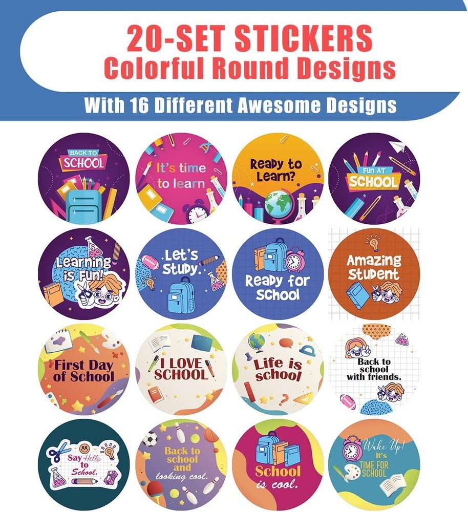 16 UNIQUE DESIGNS INSPIRING STICKERS FOR YOUR DIY PERSONALIZED DECORATIONS - These colorful and uniquely inspiring round shaped stickers are the best tool for DIY decoration and personalization of your belongings. GREAT STOCKING STUFFERS, SCHOOL CORPORATE TEACHING SUPPLEMENTARY MATERIALS, AND INCENTIVE GIFTS - Great rewards giveaways for Boys Girls, Kids, Teens, Children, Adults, Professionals. A perfect design to give during guidance sessions, classroom activities, school giveaways, birthdays, anniversaries, family day, and any other special occasions. MADE WITH DURABLE AND WATERPROOF MATERIALS - There is a lamination or coating to make the stickers high water resistant, and WILL NOT fade from the water. The stickers can stick it anywhere you like, and it sticks there and lasts a long time. A COLORFUL AND DECOR STICKER DECAL - Each sheet with 16 individual round stickers. There are 20 Sheets, with a total of 320 pieces of stickers. STICKER SIZE: 1.5 INCHES IN DIAMETER Back to School Stickers (20 Sets X 16 Designs) COLORFUL AND COLLECTION OF TEXT STICKERS • Well designed. • Very encouraging. • Self-adhesive. Back to School Stickers (20 Sets X 16 Designs) are super fun to collect; you can't have just one! That's why you will find a selection of stickers right here. Each package comes with different stickers in a variety of designs. Stick them here, stick them there, stick them everywhere! Everyone will love these self-adhesive stickers. These colorful stickers are perfect for any adults and these come with very inspiring messages and bright pictures. A fun, inexpensive way to add a decorative, notes, and stationery. Delight yourself with uplifting messages designs that are very encouraging. Back to School Stickers (20 Sets X 16 Designs) perfect for giveaways, behavior incentives, prizes! These stickers are acid-free, nontoxic, and safe for use on photos. This product comes with a 60 days money back guarantee. You can return them to us for a full refund.
