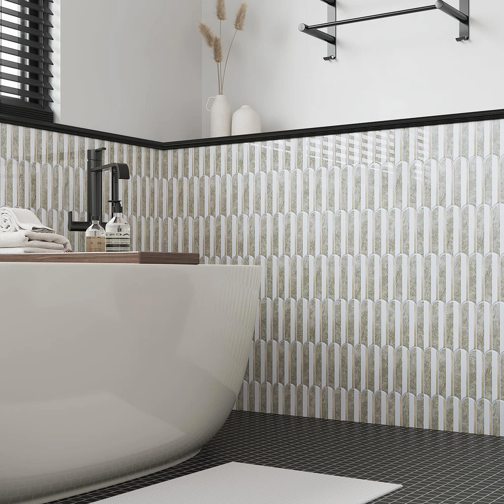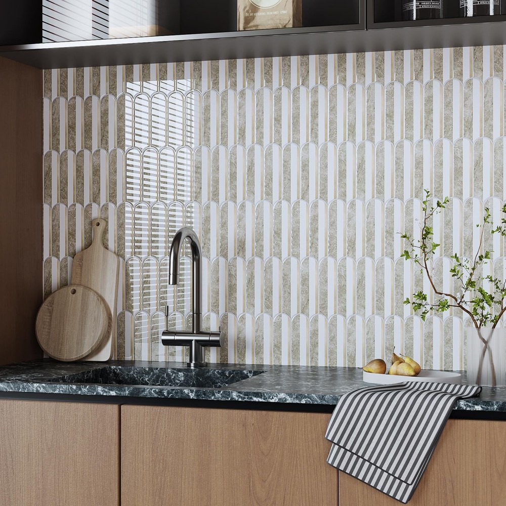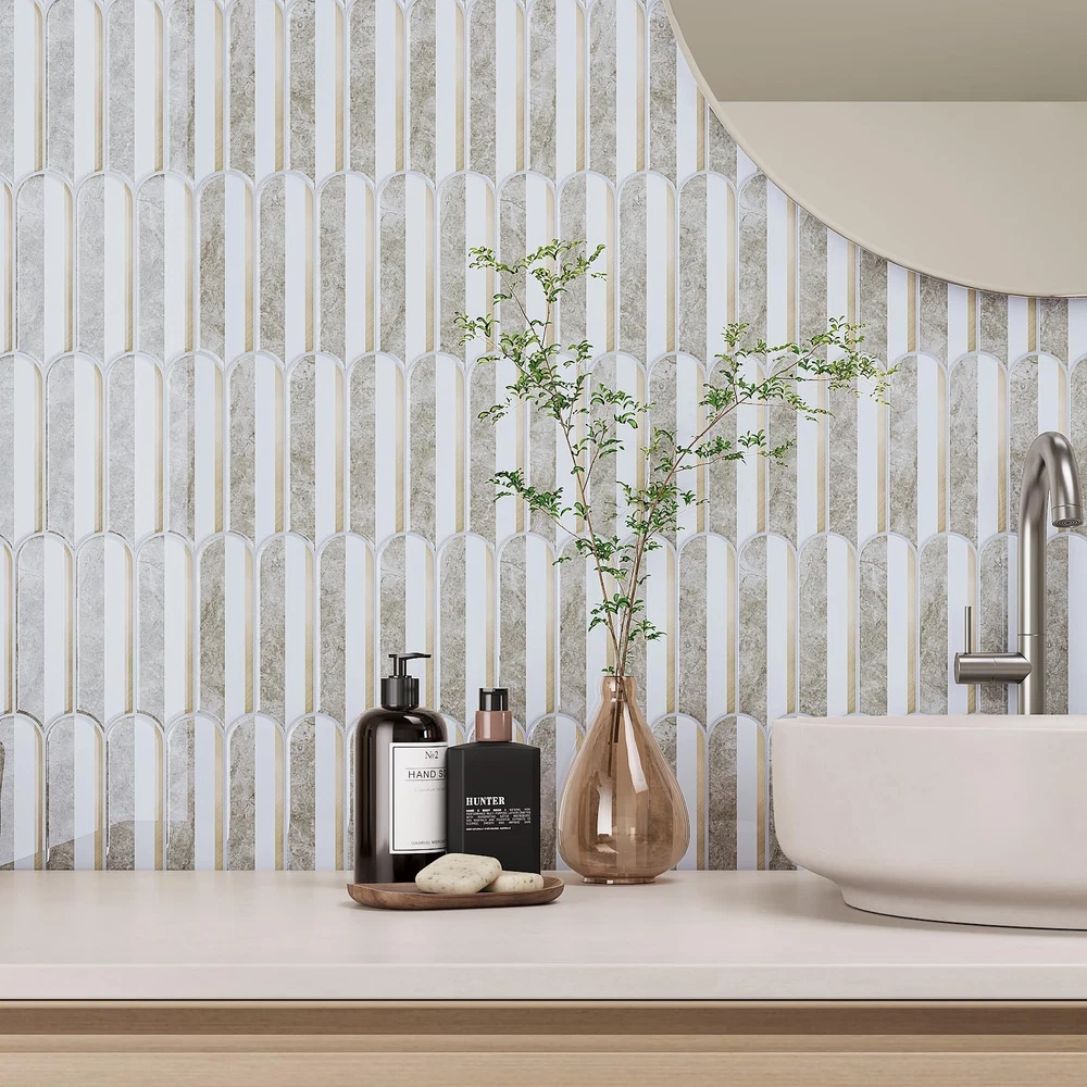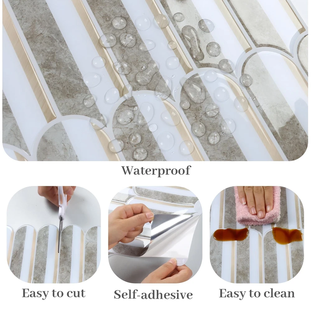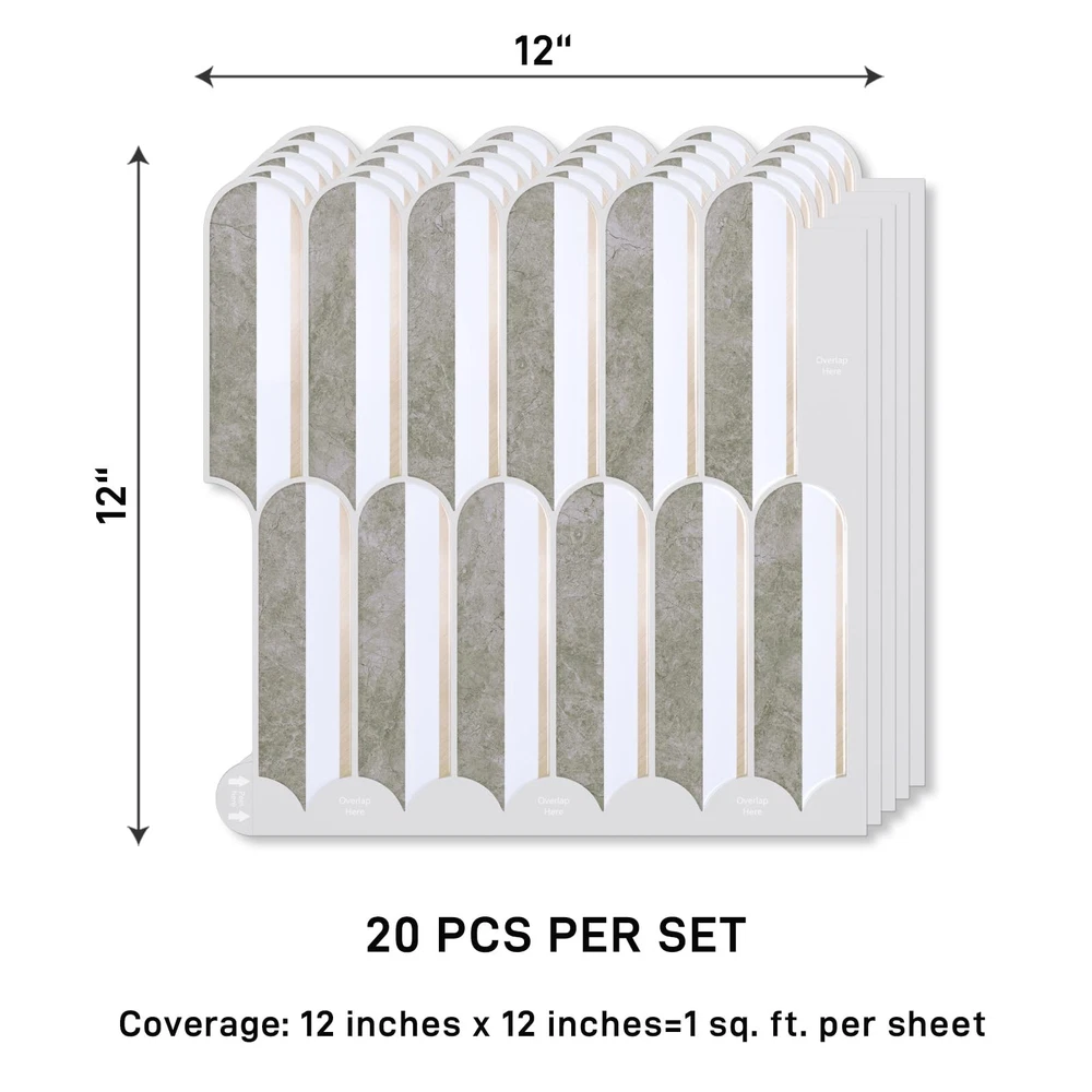 Size & Material: Each tile measures 12''x12'', thickness is 0.05'', 20 sheets per pack, total covers about 20 square feet. Brown marble combined with white and gold, long fish scale design, light grey grout, modern and luxury style. Realistic tile effect with 3D texture. Made of premium vinyl, glossy finish, flexible, light weight, durable, not easy to crack, not fade over time Features: Vinyl backsplash tile is waterproof, oil-proof, dust-proof, moisture-proof, easy to clean and maintain. Heat resistant, withstand high temperature around the stoves, protect the walls from splashes and oil. Removable backsplash, no residue after removal, no damage to walls, friendly to renters and homeowners. Good adhesion, thick vinyl backsplash, providing great covering power Easy to Install: Just peel and stick! No extra glue, no grout, no mess, no special tools and no experience needed. Quick and inexpensive solution to transform your living space. Flexible and can be bent around the corner. Easy to cut into any sizes, meet your different needs. Repositionable when making mistake, friendly to beginners. There are detailed installation instructions on the box Application: Stick on tile backsplash is versatile and can be used in a variety of settings. Peel and stick backsplash for kitchen, peel and stick bathroom wall tile, decorative tile, peel and stick tile for shower walls, farmhouse peel and stick backsplash, peel and stick fireplace tile. Wall tiles for laundry room, kitchen island, bedroom, Living Room, RVs, stairway, hallway, pantry Tips: Self adhesive wall tiles can be used on flat and smooth surfaces. Textured and rough surfaces are not recommended. Please consider 10% cutting loss and purchase enough tiles at one time to avoid slight color differences between batches. If you have any questions about our wall tiles, please feel free to contact us before or after your purchase. We will be happy to assist you