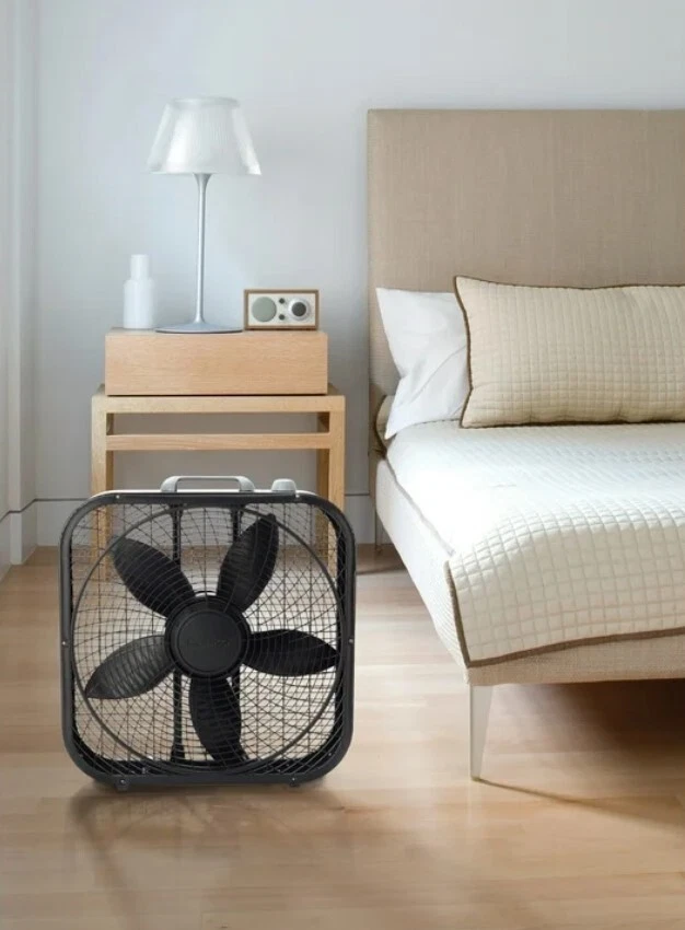 Lasko's Cool Colors Box Fan with a 20 inch fan blade in black has 3 quiet speeds, Save-Smart® energy efficiency (costs less than 2¢ per hour to operate), a durable steel frame, and a built-in carry handle. It's the perfect box fan for dorms, yoga studios, or any room that needs cooling airflow. Features a weather-resistant motor for worry-free indoor window use. Equipped with Blue Plug safety fuse technology, making this fan a safe and an energy-efficient option. 2-year limited warranty. Condition: New Slim 20 inch box fan provides high volume air movement Energy-efficient fan helps keep you feeling cooler while spending less than 2¢ per hour to operate Top-mounted manual controls are easy to reach 3 high-performance fan speeds Weather-resistant motor for worry-free window use Durable steel frame Safe, rounded corners Equipped with Lasko's trusted, fused safety plug Use in conjunction with an air conditioner to boost cooling airflow 1-Year Limited warranty