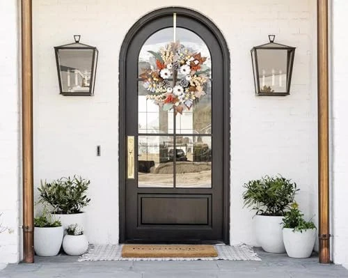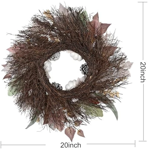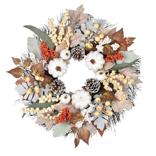 20 inch Fall Wreath Front Door Decor, White Pumpkin Wreath Harvest Wreath