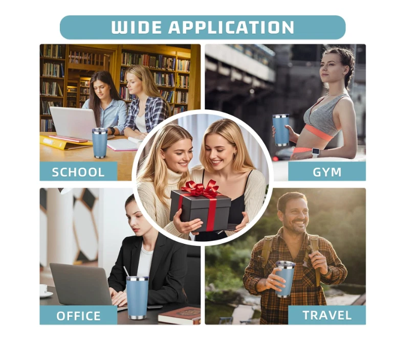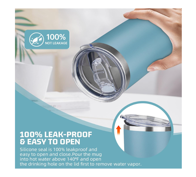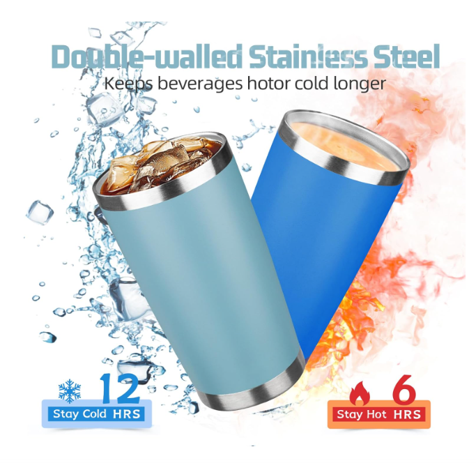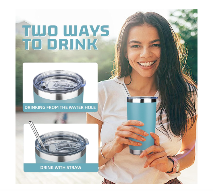 HEALTHY & SAFE MATERIAL: The 20 oz tumbler is made of 18/8 food-grade 304 stainless steel, BPA-free , giving you peace of mind with every sip. The colorful powder coating on the outside is non-slip, rust-proof, and corrosion-resistant . The electrolytically polished interior ensures it is clean and odorless, providing you with a pure drinking experience. HOT AND COLD LASTING COMPANION: This coffee tumbler adopts a double-layer vacuum insulation structure , so both hot and cold drinks maintain the ideal temperature for a long time. Cold drinks stay cold up to 12 hours , and hot drinks stay warm up to 8 hours . HUMANIZED DETAIL DESIGN: The unique 3-in-1 lid supports direct drinking, straw drinking, and wide-mouth drinking . The silicone sealing ring provides excellent leakproof performance. Anti-condensation design avoids water residue, while the wide-mouth design is easy to clean and quick to fill. The tapered cup body perfectly fits car cup holders. VALUABLE GIFT SET, MULTIPLE ACCESSORIES: Includes a splash-proof lid, straw, and straw brush . Available in a variety of stylish colors, suitable as a gift for Father’s Day, Mother’s Day, Christmas, and more . FULL SCENE APPLICABILITY: Ideal for sports, travel, driving, barbecue, camping, and parties . Whether hydrating while working out or enjoying drinks outdoors, it’s always convenient.