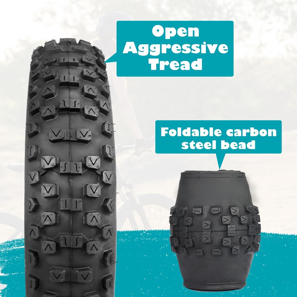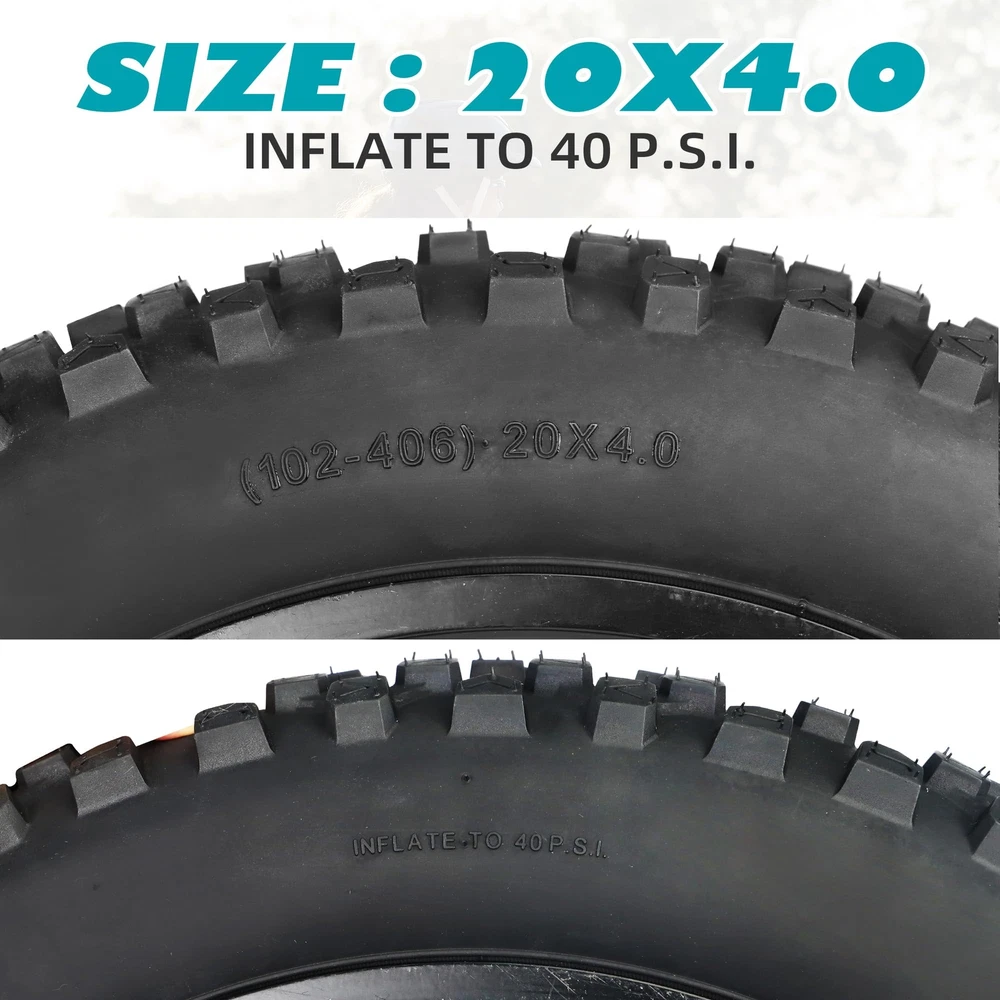 2 Pack Fat Tire for Ebike Mountain Bike Heavy Duty High-Performance Wear-Resistant E-Bike Mountain Snow Bike Tire 20" x 4",Black,2 Tires 2 Tubes 2levers EXTREME DURABILITY:This 20x4.0 fat tire is designed for rolling speed and minimal drag on hard-pack or paved terrain.Navigate every riding surface with ease and confidence, ensuring a robust and reliable ride across all terrains. PEERLESS ADAPTABILITY: versatility not only for mountain bikes but also electric bicycles, snowmobiles, and various other bike types. EASY INSTALLTION: Easy to mount on the rim. We suggest to replace the both two tires of bicycle.Upgrade your riding experience with high-quality tires that have superior shock, dampening capabilities. FOLDABLE:The 20 x 4 fat tire is safe and can be folded without damage for easy storage. Shipping We offer FREE shipping on all orders! We ship within Three business days of payment, usually sooner. We use a selection of shipping services such as UPS, FedEx, USPS etc. We only ship to the lower 48 states, no APO/FPO addresses or PO Boxes allowed. Local pickups and combined shipping options are not provided at this time. Return You can return a product for up to 30 days from the date you purchased it. Any product you return must be in the same condition you received it and in the original packaging. Please keep the receipt. Payment We accept payment by any of the following methods: PayPal Please pay as soon as possible after winning an auction, as that will allow us to post your item to you sooner! Feedback Customer satisfaction is very important to us. If you have any problem with your order, please contact us and we will do our best to make you satisfied. Contact Us If you have any queries, please contact us via ebay. We usually respond within 24 hours on weekdays. Please visit our eBay store to check out other items for sale! Thank you for shopping at our store.