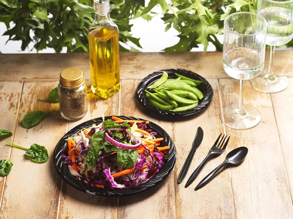 Premium quality decorative black plastic plates made to save your time and energy, just toss the plates when you’re done, no clean-up necessary Great set to serve 200 guests, Includes: 200 small 7“ appetizer, salad, dessert, plates Ideal for weddings, receptions, birthday parties, holidays, picnics, catered events and all occasions Made of durable high quality 100% food grade BPA free non-toxic heavy duty plastic Bulk pack of 200 plastic plates to accommodate all your guests. Premium quality decorative black plastic plates made to save your time and energy, just toss the plates when you’re done, no clean-up necessary. Great set to serve 200 guests, Includes: 200 small 7“ appetizer, salad, dessert, plates. Ideal for weddings, receptions, birthday parties, holidays, picnics, catered events and all occasions. Made of durable high quality 100% food grade BPA free non-toxic heavy duty plastic. Bulk pack of 200 plastic plates to accommodate all your guests.