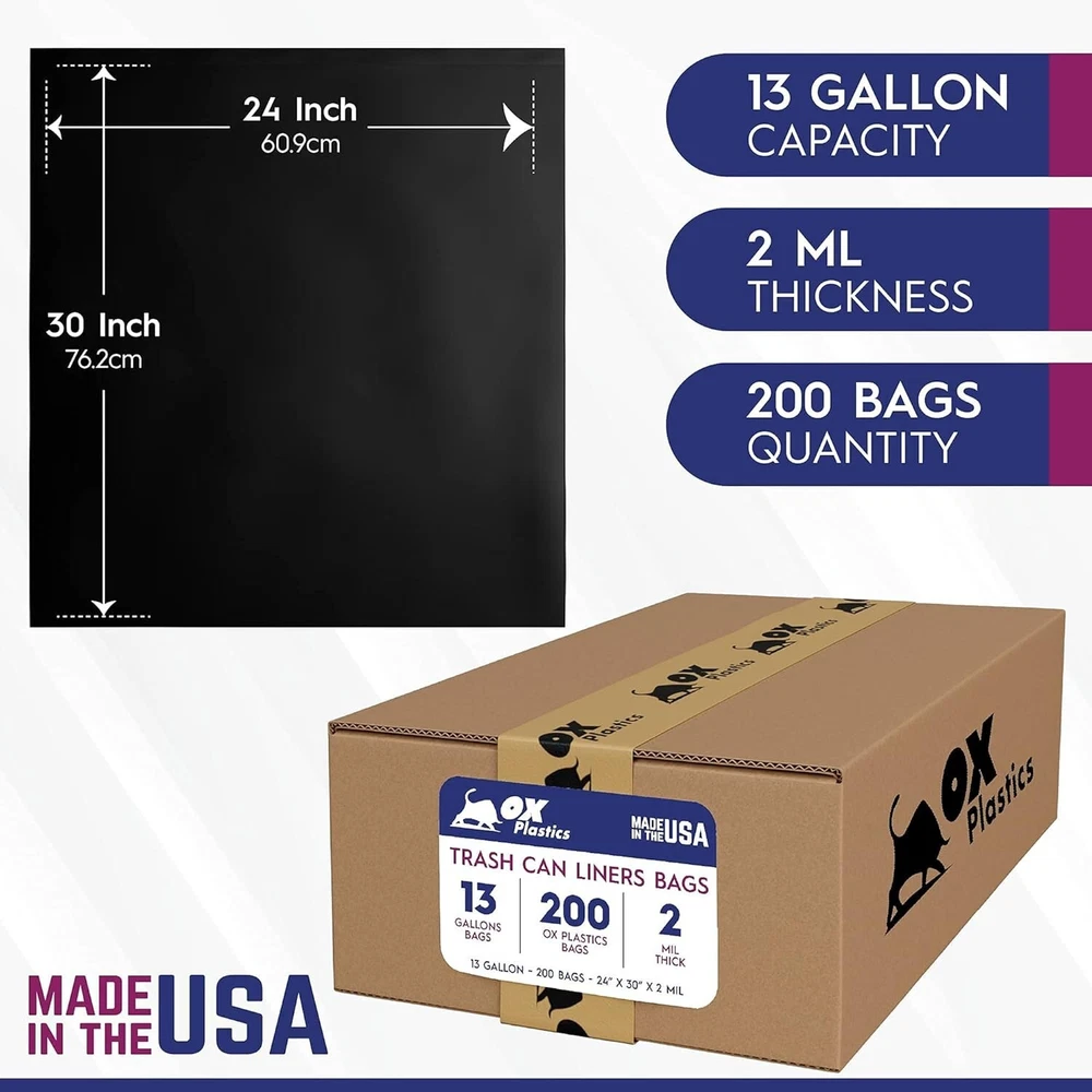 200 Count Heavy-Duty 13 Gallon Trash Can Liners - Leak Proof & Tear Resistant ‹ › ‹ › ‹ › ‹ › ‹ › ‹ › ‹ › ‹ › 200 Count Heavy-Duty 13 Gallon Trash Can Liners Introducing the ultimate solution for mess management: our Leak Proof & Tear Resistant Trash Bags . Don't let cheap plastic bags ruin your clean-up efforts; instead, choose the strong and reliable option! Features: Tear-Resistant: Crafted to withstand the toughest clean-ups, these bags can hold a variety of waste without ripping. Multipurpose: Perfect for kitchen, home, and yard clean-ups, as well as durable temporary or long-term storage solutions. Large Size: Each bag measures 24" x 30" and has a sealed bottom for added strength. High Density: Made with a unique high-density blend to prevent tears, delivering exceptional durability. Made in the USA: Proudly manufactured to meet stringent quality standards. Benefits: Exceptional durability that tolerates even the heaviest loads. Star seal design prevents leaks and enhances carrying capacity. Ideal for residential or commercial use, keeping your cans clean and mess-free. Affordable and reliable alternative to plastic bins. Perfect for safely disposing of and transporting sharp or jagged items. Why Choose Our Heavy-Duty Trash Can Liners? When mess management is your priority, our 200 Count Heavy-Duty Trash Can Liners stand apart from the rest. Designed to tackle messes of all sizes, these bags ensure that your cleaning efforts are both efficient and effective. With a remarkable capacity to hold up to even the sharpest and heaviest trash while remaining waterproof, you can have peace of mind while tackling any project. Elevate your cleaning experience and make the best choice for your home. Order your Heavy-Duty Trash Can Liners today and discover the difference in quality! Shipping Free & Fast Shipping - We offer free shipping to most of the USA with a normal delivery time of 3-10 businessdays. However, due to various situations, additional delivery time (up to 3 weeks) may be required for some items. Alternative Carriers - We may use alternative carriers (e.g. USPS, FedEx, UPS, etc.) to ensure your package arrives safely and on time. Due to the use of multiple carriers, we are unable to provide a tracking number automatically. Handling Time - Orders are processed and shipped within 1-5 business days of receiving cleared payment. Shipping Restrictions - Shipping to Alaska, Hawaii, Puerto Rico, Guam, and other US territories may incur shipping charges or delivery restrictions. Please contact us before ordering, or your order can be refunded/cancelled. State Restrictions - There may be restrictions based on your state of purchase. For example, certain items may not be shipped to California due to state regulations. Contact for Tracking Updates - If you require tracking updates or have any concerns about the delivery of your order, please feel free to contact us, and we will be happy to assist you. Return Please see our ebay return policy. We do not accept return on most products. This is to avoid customers mis-using ebay returns. All sales are final. Please be sure to check the return policy listed at the top of the listing. In rare cases, we may accept returns, if the buyer pays both ways shipping and 20% restocking fee. If you are un-sure of return policy of a particular item, please ask before buying. Payment We accept all major credit cards, PayPal, and Apple Pay for your convenience. Your payment information is secure and encrypted to ensure a safe and seamless transaction. Please complete your payment within 3 days of purchase to avoid any delays in shipping. Feedback Your feedback is extremely important to us. We strive to provide the best products and customer service possible. If you are satisfied with your purchase, please take a moment to leave us a positive review. If you have any concerns or issues with your order, please contact us before leaving negative feedback. We are committed to resolving any problems and ensuring your satisfaction. Contact Us If you have any questions or concerns, please feel free to reach out to our customer support team. You can contact us through the eBay messaging system. We are available Monday to Friday, 9:00 am to 5:00 pm EST, and we will do our best to respond to your inquiry within 24 hours. Buy it now and enjoy a pleasant shopping experience! UPC: Not Set Unit Quantity: 200 count Room: Bathroom,Bedroom,Entryway,Garage,Home Office/Study,Kitchen,Living Room,Sunroom,Utility/Laundry Room Material: Plastic Features: Heavy Duty,Leak-Proof,Tear-Resistant,Multipurpose Suitable For: Food Waste,General Waste,Indoor,Outdoor,Paper Waste,Plastic Waste,Vehicle Brand: Unbranded Item Height: 13 Gallon Trash Bags Item Length: 13 Gallon Trash Bags Item Width: 13 Gallon Trash Bags Type: Trash Bag Color: Black Capacity: 13 gal Size: Large Number of Compartments: 1 Item Weight: 12.5 lb Model: Not Set MPN: Not Set Shape: Rectangle Style: Modern Pattern: Not Set Country/Region of Manufacture: Not Set Finish: Matte Unit Type: Unit Personalize: Not Set