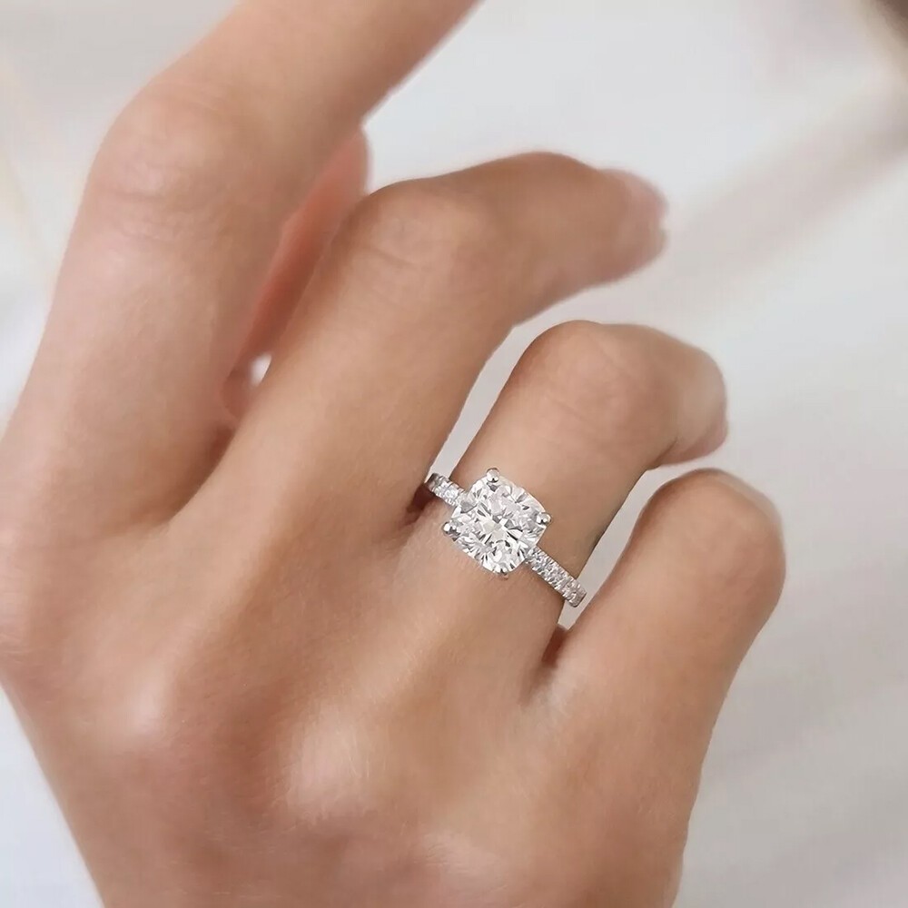 $ 72.127.00 Ct Cushion Blue Diamond Ring 925 Silver Gift for Women Birthday Sparkle