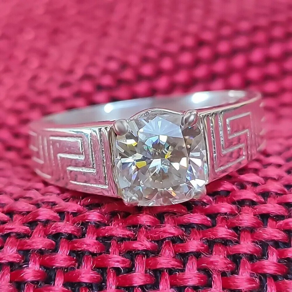 $ 92.82.00 Ct Certified Cushion Cut White Diamond 925 Sterling Silver Solitaire Ring