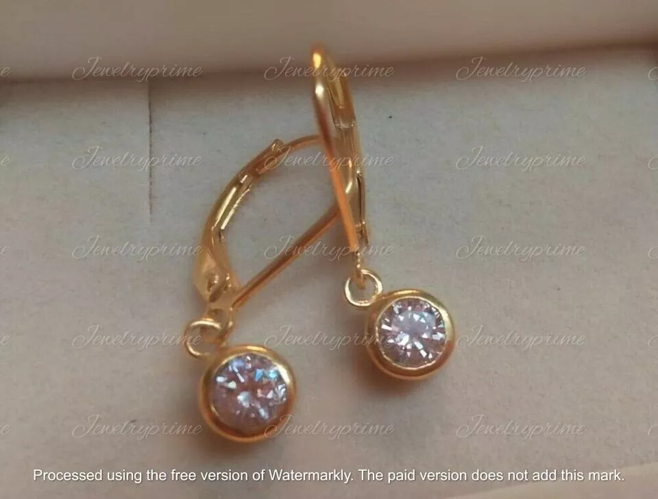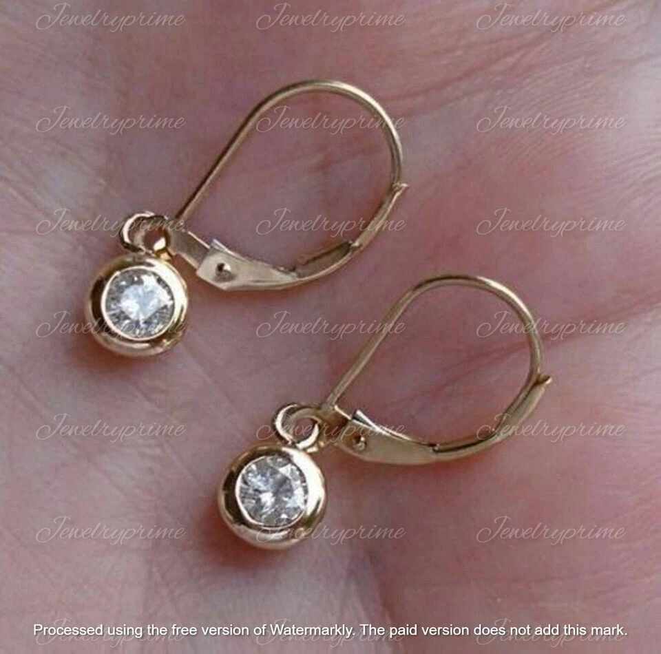 2.00 Ct Round Cut Lab Created Diamond Dangle Drop Earrings Solid 14K Gold Finish