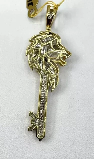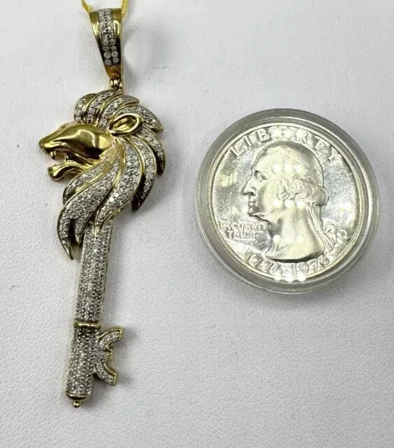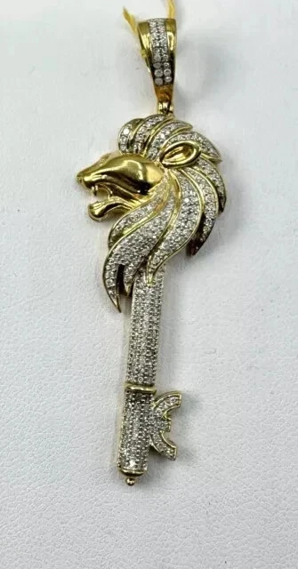 2.00 Ct Round Cut Moissanite LION king head KEY Pendant 14K Yellow Gold Plated