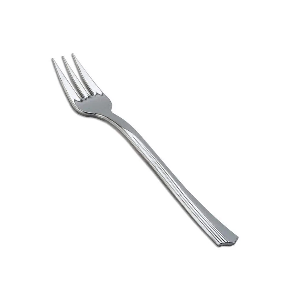 EXPERIENCE ELEGANCE AT HOME WITH THE MODERN LOOKING MINI SERVING FORKS! These Appetizer Forks for Desserts in their silver-like color and appearance are just as great as you would expect them to be. Their classic yet durable design transforms any ordinary kitchen into something elegant and modern as if it is the same setting to that of a luxury restaurant or a fine hotel tableware! Retaina Dessert’s Original Flavor! When manufacturing these small forks, no harmful chemicals are involved, only food-grade materials are used. And since the materials themselves are stable and safe, you dont need to worry about the forks affecting the taste of the food, as well as the nutritional content. Product Features: -Looks Like Real Silver -Guaranteed of the Highest Quality -Stylish and Innovative Design -Best Used in Small Portions of Desserts Like Fruits Salads, Cakes, Truffles, and Mousse -Premium Utensils -Complements Any Formal Table Setting of Any Event or Special Occasion -Great for Home, Restaurant, Bar, and Bistro Use -Dishwasher Safe -Size:4.2” Inch A Useful Housewarming Present! For your new neighbors, here’s a housewarming present they can’t say no to – our Mini Forks for Desserts. With their elegant, classy, and sophisticated design, anyone who receives it will feel special and loved. To add to their already beautiful appearance,just wrap them in fancy papers. Voila! You’ve got a gift that is to die for. PREMIUM QUALITY & STAINLESS STEEL FINISHED - Finished with a stainless steel coating, our miniature utensils and cutlery have that real silver look, just like real silverware. They are also made with a heavy duty disposable plastic so they are strong enough for enjoying many desserts and appetizers PERFECT SIZE FOR MINI DESSERTS & APPETIZERS – 4.2” mini tasting forks are big enough to get the job done. They are the perfect size to accompany cake, fruit cups, cocktails, salsa, salads, mousse cups, shooters, and small appetizers. ELEGANT & MODERN - Silver tasting forks make a beautiful presentation at any event versus clear plastic forks. These exquisite little forks are super cute and great for serving with small foods, petite desserts, shooters, trifles, dip, yogurt parfaits, tiramisu, jello shots, and hors d'oeuvres. PERFECT FOR ANY OCCASION - Make your next event a huge hit! Add a dash of elegance to your next Birthday, children’s party, banquet dinner, catering event, reunion, engagement party, weddings, bridal shower, holiday, Valentine’s Day, Mother’s Day, Easter, Thanksgiving dinner, Christmas, New Year’s Day.