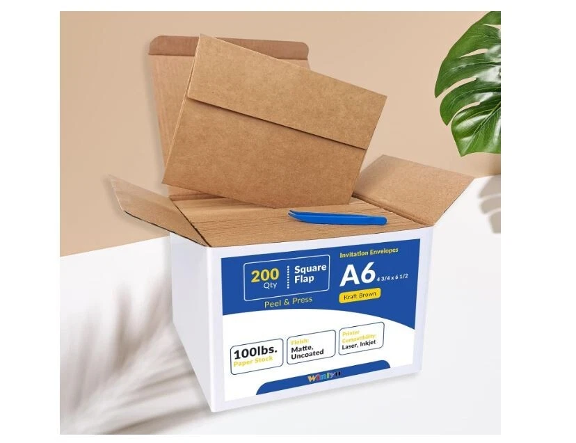 200 Pcs A6 Invitation Envelopes in Brown Kraft Peel & Seal Self-Seal 4 3/4 x ... Color Brown Kraft Closure Type Self-Seal Occasion Graduation Material Paper About this item 200 Pcs A6 Invitation Envelopes 4x6 Greeting Cards Envelopes Self Seal in Brown Kraft Come in A Nice Sturdy White Cardstock Storage Box. Box help you nice to keep on the shelf. The A6 square flap envelope is easily sealed by a Peel & Press strip located on the back flap. For social and invitation purposes, the A6 is also an ideal large reply envelope size as it easily fits inside A7, A8, A9 and A10 size envelopes. Material: A6 Invitation Envelopes are Crafted from 148 GSM / 100 lbs Text Paper, A6 Note Envelopes are thick enough to protect documents inside and not see through.Have tape with self-adhesive strip located on the back square flap, it is very convenient that they come with the adhesive strip so you do not have to lick or wet the envelope to close.The Blank Envelopes perfect for making homemade envelopes by painting and decorating. A6 announcement envelopes measure 4.75" x 6.5". A6 envelopes self seal are easy to use, the perfect size and sturdy enough to protect 4x6 treasured photo paper, 4x6 cards, postcards, 4 x 6 thank you cards, greetings cards, holiday cards, response cards, save the date cards, RSVP cards, gift cards, notes, invitations, letters, announcements, mailings, business applications and more. They are reply envelopes. They fit inside standard letters as well as envelopes which size of A7, A8, A9 and A10. Color: A6 Greeting Cards Envelopes Bulk feature an rustic texture and look in brown paper. Beautiful brown color perfect for lettering and will give a perfect low-key and natural feel to invitations you're sending out. A6 Invitation Envelopes perfect match for all occasions whether playful or formal. Featuring in brown kraft paper, A6 Self Seal Envelopes looks so earthy and natural that perfect match any theme occasions.For social and invitation purposes, A6 Envelopes stationery perfect for any formal invites, weddings, baby shower, wedding shower, bridal shower, baby announcement, pregnancy announcements, birth announcement, graduation announcements, business, banquets, birthday, holiday party, thanksgiving, bridal shower, graduation, and corporate events.