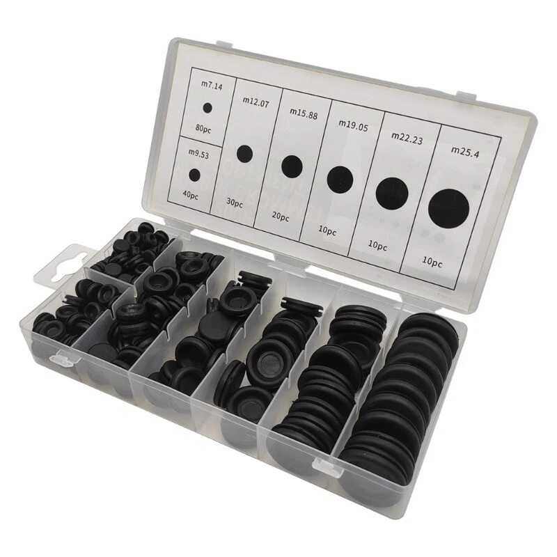 Features: Made from rubber material , do not dry out or crack, are corrosion resistant and high temperature resistant. Has good toughness. The Cable Grommet is used to protect and insulate wires and cable. Heat, abrasion and oil resistant, very easy to install. The eyelet has a thin rubber membrane in the middle that you can poke through to create your own opening. Equipped with a clear storage box, which is safe and more convenient, easy to carry and well classified. Suitable for car, cylinders, valves, pumps, electrical appliances, chemicals pipes, sprayers, water pipes and decorations, etc. Specifications: Material: Rubber Size: As Shown In The Picture Package Includes: 80pcs 7.14mm 40pcs 9.53mm 30pcs 12.07mm 20pcs 15.88mm 10pcs 19.05mm 10pcs 22.23mm 10pcs 25.4mm note: Please allow 1-2cm errors due to manual measurement, make sure that you do not mind before you order. Due to the difference between different monitors, the picture may not reflect the actual color of the item.