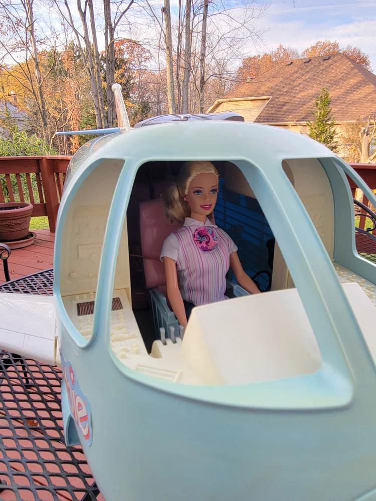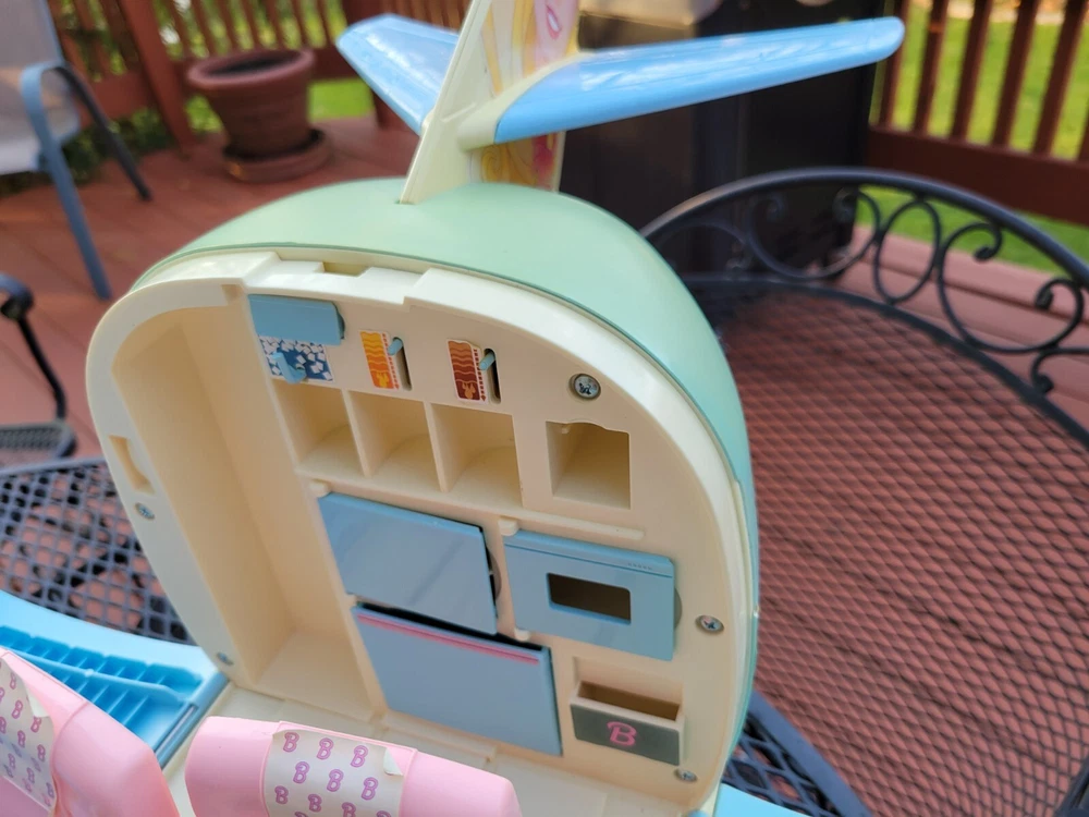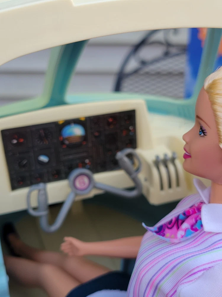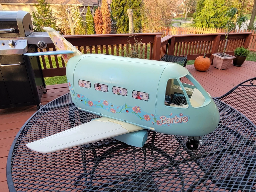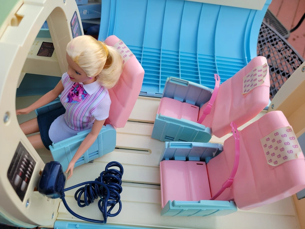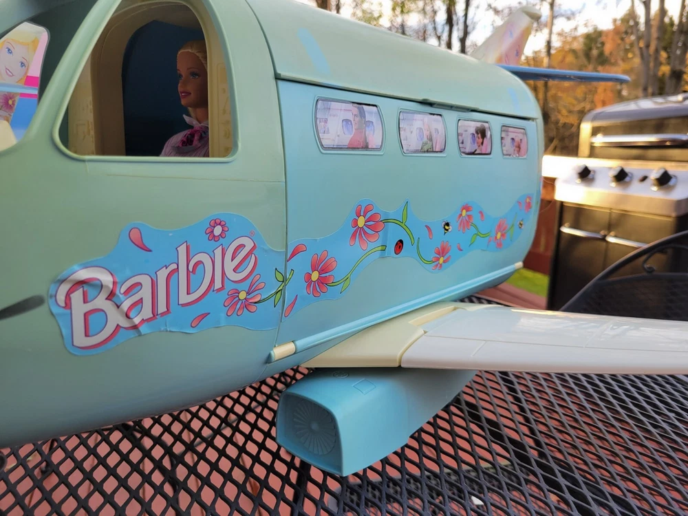 ~Mattel Vintage 2000 BARBIE AIRPLANE Blue Plane w/Barbie & Box~ ~Excellent Vintage Condition-see pics~ tested and works-makes airplane noises-takeoff and landing sounds ~microphone works. ~Accessories not included- includes Barbie w/ hat This vintage Mattel Barbie Airplane set from the year 2000 is a must-have for any Barbie collector or enthusiast. The airplane is compatible with 11.5" dolls and features battery-operated functionality. The set is an original, licensed reproduction and is perfect for display or play. Don't miss out on this opportunity to own a piece of Barbie history! COMES FROM A SMOKE/PET FREE HOME