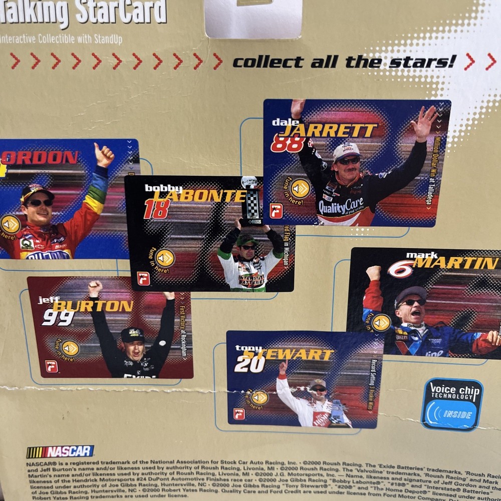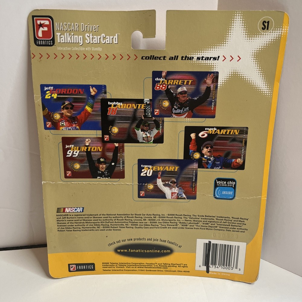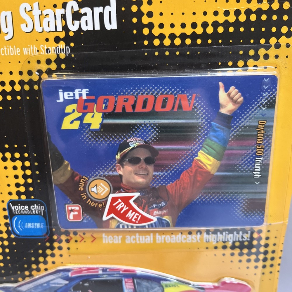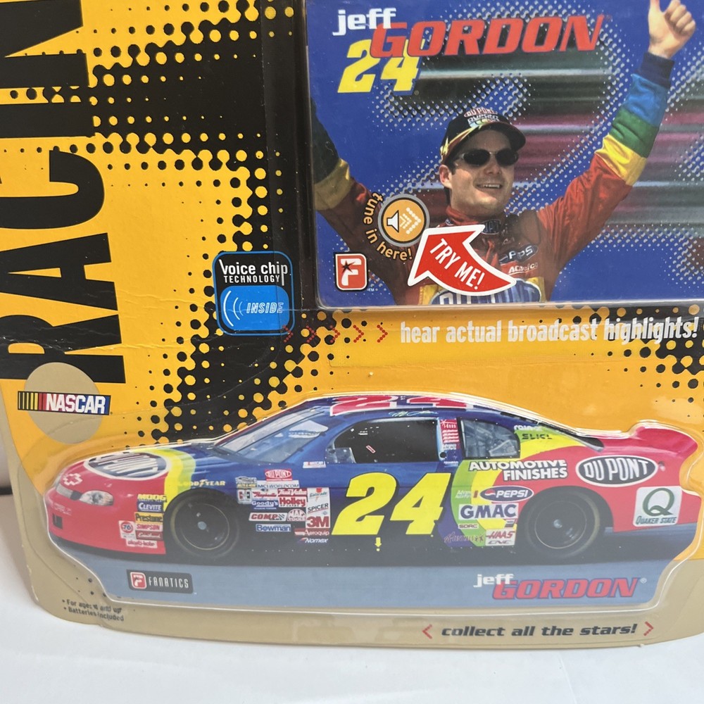 FREE SHIPPING!!!!! ❤️❤️❤️ The product is a 2000 Fanatics Nascar Racing Driver Talking Star Card featuring Jeff Gordon of the Hendrick Motorsports team. This collectible item is designed for unisex adult fans of NASCAR and showcases Gordon in his iconic Dupont 24 car. The talking card does not require any modifications and is a unique addition to any NASCAR memorabilia collection. Made in China, this officially licensed product captures the essence of Jeff Gordon's racing career in the NASCAR league.
