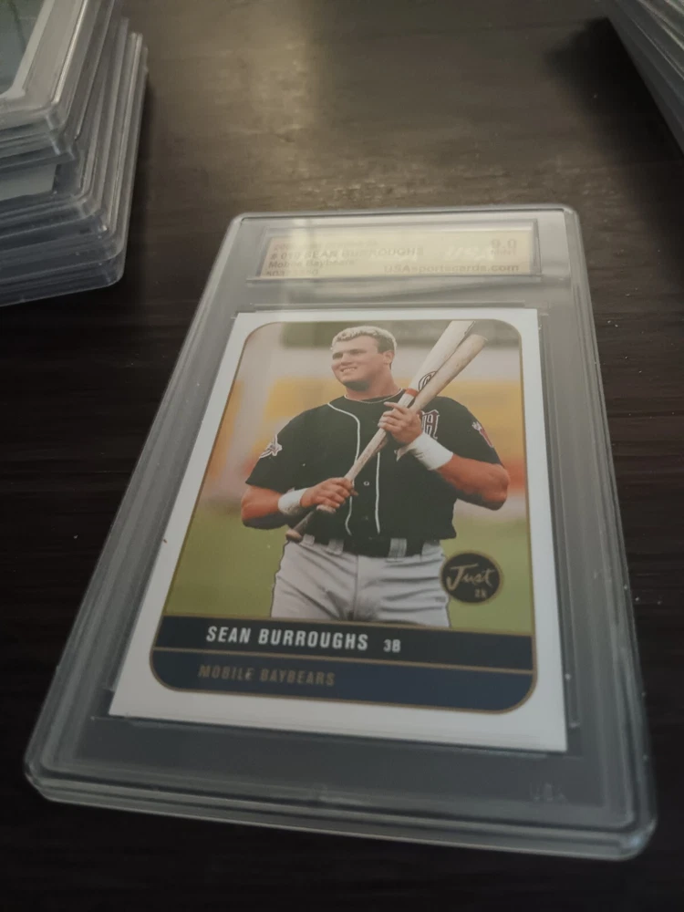 This 2000 Just Minors Just Graded sports trading card features Sean Burroughs of the Rancho Cucamonga Quakes. The card is part of the base set and has a card number of 010. It is a great addition to any Minor League Baseball (MiLB) fan's collection. The card is manufactured by Just Memorabilia and is a single trading card. The season it represents is 2000. This card is perfect for any baseball enthusiast who is looking to add a quality piece to their collection.