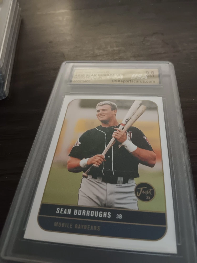 This 2000 Just Minors Just Graded sports trading card features Sean Burroughs, a former player for the Rancho Cucamonga Quakes in the Minor League Baseball (MiLB). The card is part of the base set and has the card number 010. It is a great addition to any collection for fans of baseball and the MiLB. The card was manufactured by Just Memorabilia and is a single trading card. The card is perfect for collectors looking for a piece of baseball history. The 2000 season was a significant time in the MiLB, and this card captures a moment of that history. Whether you are a fan of Sean Burroughs or just a collector looking to add to your collection, this card is a great choice.