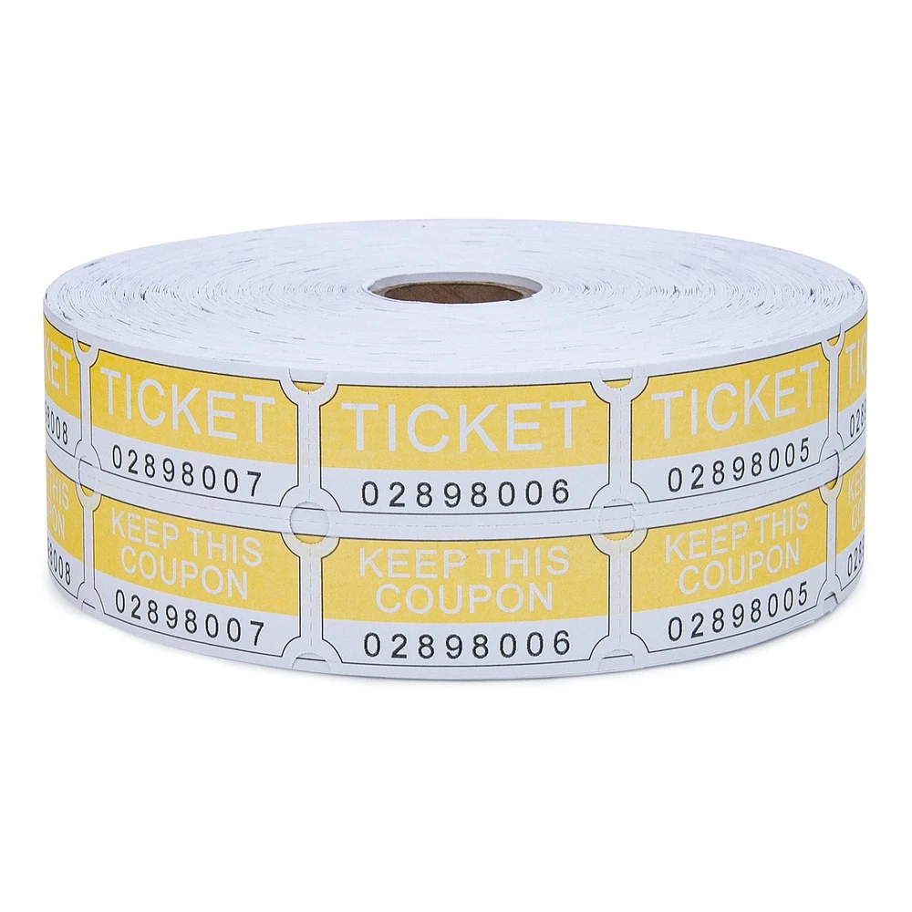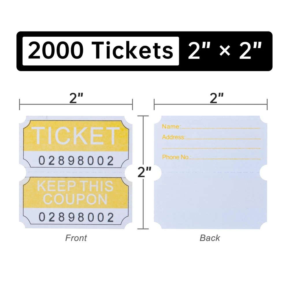2000 Raffle Tickets, Double Rolls, Double Roll (Yellow) SIZE AND COUNT:2000 Pairs of 2” x 2” double tickets, each pair with a deposit ticket and keep ticket, and split into 2” x 1” halves-yellow CONSECUTIVE NUMBERS:consecutive numbers are printed in edge of raffle tickets,which avoid fake tickets sneak into these tickets and make counting more efficient. EASY TO TEAR:There are perforated lines between raffle tickes,so that it's very easy to tear apart. EASY TO WRITE:Name/Address/City/Phone can be filled in the back of raffle tickets which be printed "TICKET".These raffle tickets include deposit tickets and keep tickets. SCENARIOS:These raffle tickets are great for 50/50 raffles,giveaways,fair,carnivals,drawings,door prizes,events,trade shows and so on. Add some excitement to your party or social event with this Double Roll of Raffle Tickets. Our consecutively numbered double tickets include 2000 tickets per roll and each ticket has a tear-off ticket stub. Our roll of tickets are perfect for raffles, fair and carnival games, school dances, prize drawings, admission tickets, and more. Shipping We offer FREE shipping on all orders! We ship within Three business days of payment, usually sooner. We use a selection of shipping services such as UPS, FedEx, USPS etc. We only ship to the lower 48 states, no APO/FPO addresses or PO Boxes allowed. Local pickups and combined shipping options are not provided at this time. Return You can return a product for up to 30 days from the date you purchased it. Any product you return must be in the same condition you received it and in the original packaging. Please keep the receipt. Payment We accept payment by any of the following methods: PayPal Please pay as soon as possible after winning an auction, as that will allow us to post your item to you sooner! Feedback Customer satisfaction is very important to us. If you have any problem with your order, please contact us and we will do our best to make you satisfied. Contact Us If you have any queries, please contact us via ebay. We usually respond within 24 hours on weekdays. Please visit our eBay store to check out other items for sale! Thank you for shopping at our store.