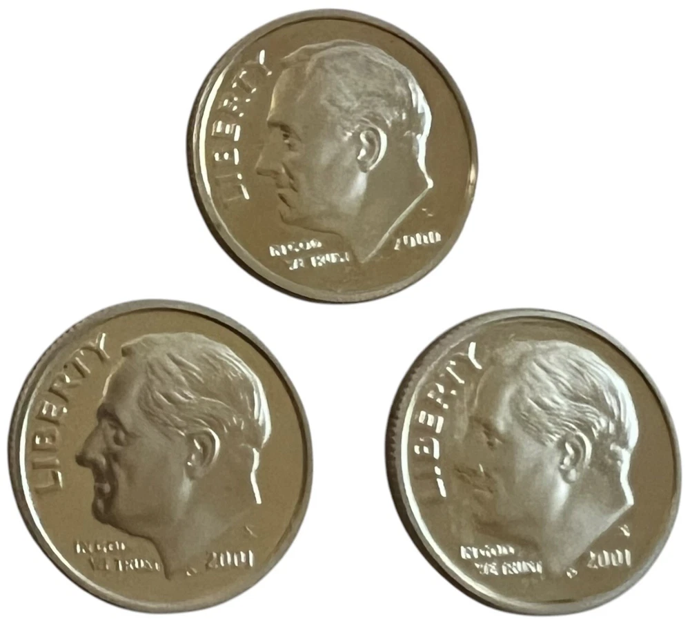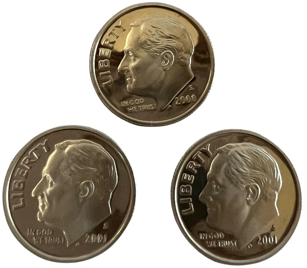 Presented is a Lot of Three 2000 S and 2001 S Roosevelt Silver Dimes Lot of 3 1-2000 S 2-2001 S 90% Silver DCam Proof Please review the photos as they accurately depict the condition of the item you will receive. Thanks for stopping by!