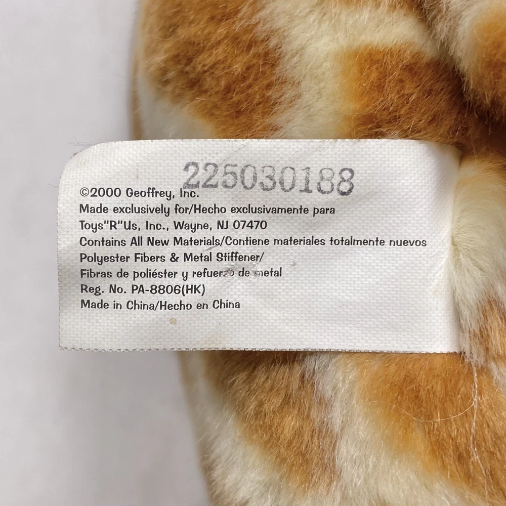 Brand:Toys "R" UsAge Level:12 Months & Under, 1-2 Years, 3-4 Years, 4-7, 8-11 Years, 12-16 Years, 17 Years & Up, 0-6 Months, 12-18 Months, 17 Years and Up, 18-24 Months, 2 Years, 6-12 MonthsUPC:0717851932847gtin13:0717851932847Color:MulticolorRecommended Age Range:0+Christmas Gift Birthday Present:Talking Animal Speaks Spanish ONLYSize:Medium (14-24 in)Year:2000Seller Notes:“In good condition. Photos show the actual item you will receive.”Spanish Language Learning Toy:Lovey Stuffy Plushy Plush Stuffed AnimalFeatures:Talking, Spanish SpeakingOccasion:Any OccasionAnimal:GiraffeType:GiraffeCharacter Family:Geoffrey