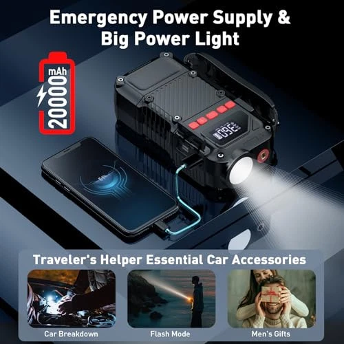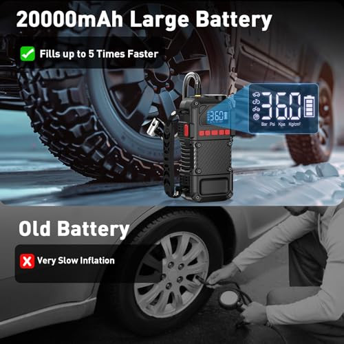 Return Policy Fast Delivery Trusted seller Tire Inflator Portable Air Compressor - 20000mAh Portable Air Pump, 150 PSI &12DC Tire Pump with LED Light, LCD Screen, Portable Tire Inflator for Car/Bike/Motorcycle/Ball/Swim Ring, Car Accessories Product Description Fast inflation150PSI: The upgraded 5X inflation, the car air pump inflates faster than other air pumps. Only 30S to inflate your car tires (30-36 PSI), saving valuable emergency time. By keeping the air pump in your car, can perform tire maintenance anyw, anytime without waiting. Battery 20000mAh &12DC inflatble:Portable tire inflator for car used 20000mAh rechargeable battery to inflate a variety of items, car tires, bike tires, swimming rings, sports balls and so on.Also you can use equipped car cigarette lighter when the battery is low and enjoy fast inflation. 4 inflation mosde auto stop :The upgraded air pump for car tires has 4 pins, 4 units (PSI, KPA, BAR, KG/CM²) and 4 preset inflation modes -car, motorcycle, bicycle, ball,combining the functions of car tire pump, swimming rings pump, air bed pump, bike pump and sports ball pump. Whether you are at home or on the road, this portable air compressor can meet your daily needs. Manually adjust pressure value, reach the preset pressure value, auto-shup-off inflating. Portabll multipe occasion use :The electric air pump has a convenient handle, which can be used either on the ground or in your hand when inflating.Can be held in one hand, the size as a mug, only 570g,small and lightweight,easily stored in your car, bike rack or backpack.A gift for your husband, father, son, family and friends,for outdoor activities and camping. 24 hours solve: The electric tire pump has 24×7 hours solve, equipped with detailed instructions, don't worry about the quality and use of our car pump. Shipping Returns Payment Shipping Shipping is FREE to all addresses other than APO/PO boxes in the lower 48 states. All our stock ships from US-based warehouses. Shipped via USPS or UPS (depending on location and package weight) Unless stated otherwise, all orders will ship within 24-72 hours of your payment being processed. Check our feedback to see the great reviews of FAST shipping we offer. Returns Seller does not accept returns Payment We currently accept payment via eBay managed payments only. Once payment is cleared, we will dispatch your shipment within 1-3 business days. Please refer to the "Shipping" tab for more information regarding shipping speed to your destination.