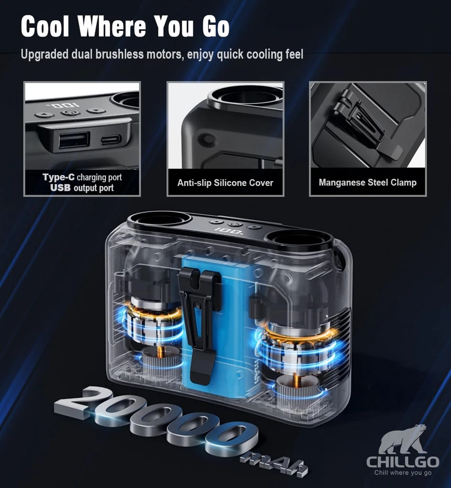 Introducing our 5-in-1 Dual Motor Fan, designed for ultimate cooling comfort! Powered by strong dual motors, it delivers 2-4X faster wind speed, ensuring a refreshing breeze like never before. The innovative airflow channel, with a bottom air inlet and top outlet, provides smooth, superior wind feel for an exceptional experience. Thanks to quick charge technology and a large battery, enjoy long-lasting power without frequent recharges. The high-quality silicone guard offers robust protection against drops and shocks, ensuring durability. This portable, multi-functional fan clips to your waist, hangs around your neck, or is held in your hand, adapting to your needs. It even supports reverse charging in emergencies! With elegant packaging, a detachable strap, charging cable, and detailed guide, it's perfect as a gift or personal use. Experience the perfect blend of style, functionality, and convenience with this must-have portable fan! Dual Motors, Strong Breeze - Powerful dual motors, this portable waist fan significantly enhanced wind speed: Powered by dual motors, this fan is durable. With an upgraded airflow channel, the wind speed can reach 2 - 4 times stronger, providing a more refreshing experience