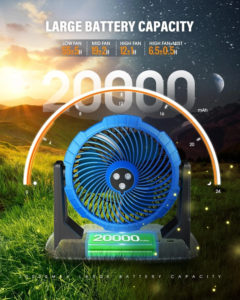 20000mAh Portable Misting Fan with 9L Bucket – Ideal for Outdoors & Camping