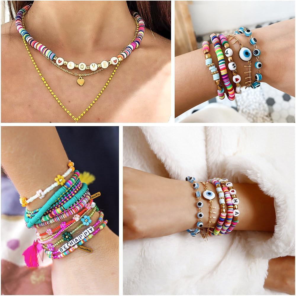 ADIIL 7200Pcs 6mm Polymer Heishi Beads Kit for Bracelet Making in 10 Colors