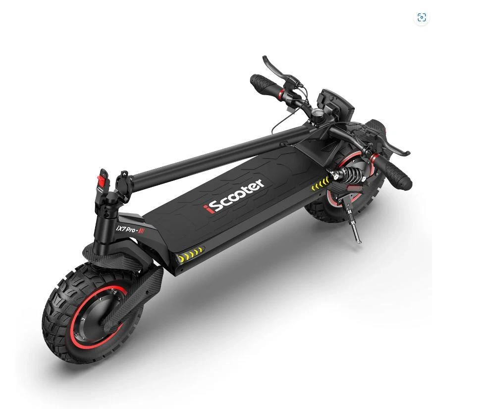 About this item 【Versatile Speed and Dual-drive Electric Scooter Adults】 Unparalleled flexibility with dual-drive switching. Single drive speeds range from 12 to 31 mph, while dual drive reaches exhilarating speeds up to 38 mph. Scooter powered by dual 1000W motors, conquer steep hills and challenging terrains effortlessly. It is certified to UL2272 【Long-Lasting Battery and Long Range Electric Scooters】 Equipped with a CE-certified 48V-54.6V 15.6Ah battery, iScooter electric scooter for adults delivers a substantial range of 40-50 miles on a single charge. Perfect for longer commutes and extended rides, ensuring you stay powered throughout your journey 【Advanced Lighting and Safety Features】 Scooter electric with an advanced lighting system, Ride safely day or night, including a headlight with reflectors, turn signals at the four corners of the deck, blue ambient side lights, and a tail light that flashes when braking. Robust dual-handlebar front and rear disc brakes, along with hidden power cut-off brakes, ensure reliable stopping power 【Comfort, Control, and Durability Escooter】 The 10-inch off-road pneumatic tires and front swingarm plus rear spring suspension provide excellent grip and shock absorption for various terrains. With the Minirobot app, monitor and customize your ride, including a lock feature for added security. Built to support up to 330 lbs (150 kg), our e scooter for adults is designed for durability and strength 【Why choose iScooter 】 Because we prioritize quality and technical excellence in every electric scooter we produce. With our one-piece pre-installation design, you won't need to assemble anything upon receiving your iX7 Pro. Plus, we offer a 360-day or 180-day warranty on different parts, get in touch with us for fast and professional service – your satisfaction is our priority. Before embarking on your first ride, make sure to fully charge your electric scooters for optimal performance FAQS At iScooter Electric we are passionate about providing dedicated customer support, so you get total peace of mind with every electric scooter. Q1: How long does it take to deliver? The United States delivery time is 2-5 business days. We are working hard to ensure all orders arrive in a prompt and timely manner. Countries Shipping Time Ship By Western United States 2-4 Business Days UPS / FEDEX Eastern United States 3-5 Business Days UPS / FEDEX Q2: The front light and screen will be automatically shut off? A:To save and protect the battery, when the scooter is stationary for 5-10 minutes, it will automatically enter power-save modes and turn off. Q3: Unable to accelerate? A:1. For your safety, by default, we designed for this, "Non-zero startup", it only needs one initial speed to start. Or you can connect "Minibot" APP, then, if you turn on Zero Start. 2. Error code (visible on LCD), please contact us to replace a throttle. Q4: Motor hall Faults? A:Take off the screws on the bottom of the scooter, then check the controller and replug the hall wire connecting terminal. Q5: Controller Faults? A:Take off the screws on the bottom of the scooter, then check and replug the controller connecting terminal. Q6: Unable to power on? A:1. Unplug your charger from the port, then click the power button to turn on your scooter. 2. Use the multimeter to measure the voltage of the battery, if the voltage is from 30-42V, it means there is no problem with the battery. If the voltage is lower than 30V, the scooter maybe not be turned on. Q7: Not charging? A:1. Check your charging cable and charging port for signs of damage, like breakage. Don't use damaged accessories. 2. Use the 220V ACA of the multimeter to measure the voltage of the charger and charger port, if there isn't reading, your scooter probably needs to replace the charger or charger port. if there is a reading, it probably needs to replace the battery. Q8: Scooter seems to make noise? A:It may be the disc brake noise. To remove the disc brake noise:First make sure the scooter is turned off. 1. Loosen two screws on the pump (not the screw on the rocker). 2. Adjust the position of the disc brake pump to ensure that the brake disc is in the middle of the two brake pads. 3. Keep the brake disc and brake pad not touching each other. 4. Hold the disk brake pump in the desired position, then retighten the screws to the pump. Or contact customer service to get an operation video. Q9: The speed and range are not as same as described? A: The speed and range will be effected by temperature of environment, the condition of road, the weight of rider(including all belongings ) The package includes: 1 x iX7 Pro Electric scooter 1 x Charger 1 x Waterproof black scooter bag 6 x Screws 1 x Allen Wrench 1 x Manual Tools: Adjustable wrench, screws