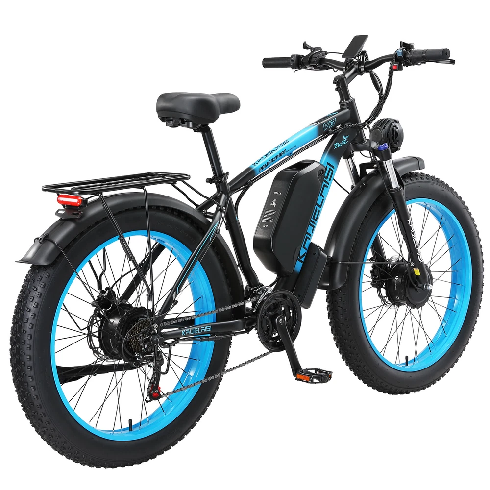 2000W Dual Motor Dirt Bike 48V/23Ah 35MPH 26" Electric Bicycle for adult KETELES About this item: * Powerful Motor E-bike: The V3 is a powerful all-wheel drive electric bike for adults. 2000W brushless motor (1000W front and rear) with Shimano 21-speed gear for an easy ride, with a top speed of about 33MPH, with a long range of more than 40 miles. Equipped with 48V, 23AH detachable lithium battery, so you can bring the battery to your home or office to recharge. Charging time: Approximately 6-8 hours, 2000 cycles of charging. * Fat Tires 26"x4.0" Ebike: Fat Tire and front suspension to ride smoothly on any terrain, including rocky roads, sandy beaches, snowy suburbs and so on. * Hydraulic Disc Brakes: The front and rear hydraulic brake system with power-off function offers an easy brake within 2 seconds, which provide more effective braking in rainy weather, heavy off-road, long downhill, high-speed riding and adverse conditions, stop the e-bike quickly and smoothly. Equipped with 21 speed gears, more accurate and stable. The lockable aluminum suspension front fork has a good shock absorption effect, which can offer you safer and comfortable riding experience. * Smart Display: Mileage 5-speed LCD display computer shows your speed per hour, total distance and remaining battery power for a better riding experience. You can then control the display of miles or kilometers as a unit of speed or mileage through the settings menu. * 5 Riding Modes: Including pedal assist mode, throttle mode, normal bike mode, cruise control mode, and walking mode. Elevate your off-road adventures with our mountain bike. Unleash the thrill of conquering diverse terrains, from rugged mountain trails to challenging off-road paths. Multiple modes are suitable for different road conditions, making your riding journey more fun. * Easy installation: 85% of the bike is pre-installed, you only need to manually install a few simple accessories. * 1 Year Warranty: We provide 1 year warranty. If you have any questions about this item please directly contact us. Specification: Bike Type E-Bike Age Range Adult Brand KAIJIELAISI Number of Speeds 21 Color Black-Blue Wheel Size 26 Inches Brake Style Disc Frame Aluminum Fork Aluminum Alloy Suspension Fork with Lockout Brake Hydraulic Brake with Power Cut-off Feature Throttle Twist Throttle on the Right side of Handlebar Display Smart LCD display that shows speed, battery status, pedal assist level, etc. Range Fully Electric Mode Range: around 40~60km Pedal Assist Mode Range: around 70~90km Voltage 48 Volts (DC) Model Name V3 Wattage 2000 watts Item Weight 38kg Maximum Weight Recommendation 200 Kilograms Warranty 1 year Suggested Users Unisex-adult Charge time 6-8 hours Warm Tips: 1.New electric bike passes road test before packing, therefore dust on the tires is inevitable. 2.Upon arrival, mark down the serial number, which locates on the middle axle tube, and register to vehicle management center. It is necessary to track your ebike while preventing loss. 3.Please be aware of the height of electric bike. Note: Our products have been certified under UL2849 safety standards. Payment Delivery details Terms of sales About us Contact us Payment We accept Credit Card, Debit Card and eCheck payments through Payoneer. Delivery details 1. Thank you very much for purchasing our products. 2. All the items double checked well packed bafore shipping. 3. Itme will be dispatchec within 2 business day(not includes the holiday and weekend) after your payment. 4. We usually use Fedex or UPs logistics to transport your package, and the delivery time would be about 5-7 business days. 5. When you have completed your payment, please leave your correct phone number and address, you could contact us by courier for any quesiton. And keep your phone open, prevent the delivery staff contacting you and causing the package to be returned. Terms of sales We guarantee 100% customer satisfaction. We check all items before sending out, if you received an broken/ defective item, please take photos and send to us immediately. We only accept those case reported within 30 days. Please keep all package material, return items must be in good condition. About us Keteles was specialized in producing bicycle, mountain bike, electric bikes, folding bikes, and other bicycle products. Our products are characterized by elegant appearance, superior quality, assorted specification, novel design, safety and reliability. With a complete set of facility, a perfect quality insurance system and an advanced testing method, we have experienced designers, engineers, management personnel and workers. We always stress on product quality and new product development. We strictly stick to tenet of "emphasizing on quality, stressing on credit, seeking for little profit and pursuing for development". We have gained a good reputation among customers at home and abroad. With our strict quality management, reliable credit, powerful strength and comprehensive marketing network, we sincerely welcome customers to cooperate with us. We would like to accompany you to create a brilliant future. Contact us Our goal is to make sure you are a happy buyer and have a pleasant shopping with us. Please leave us positive feedback and 5 stars rate if you are happy with our item and service. Please contact us before leaving any 1 or 2 ratings, neutral or negative feedback or open any dispute. We understand the concerns and frustrations you might have, and will do our endeavor to resolve the issues. Please give us the opportunity to resolve any problem. We thank you for your effort to make this sale and purchase experience a happy one! If you have any question about us, feel free to contact us, Please allow 24 hours for a message reply! We are highly appreciated your Positive feedback, we will try our best to resolve your problem.