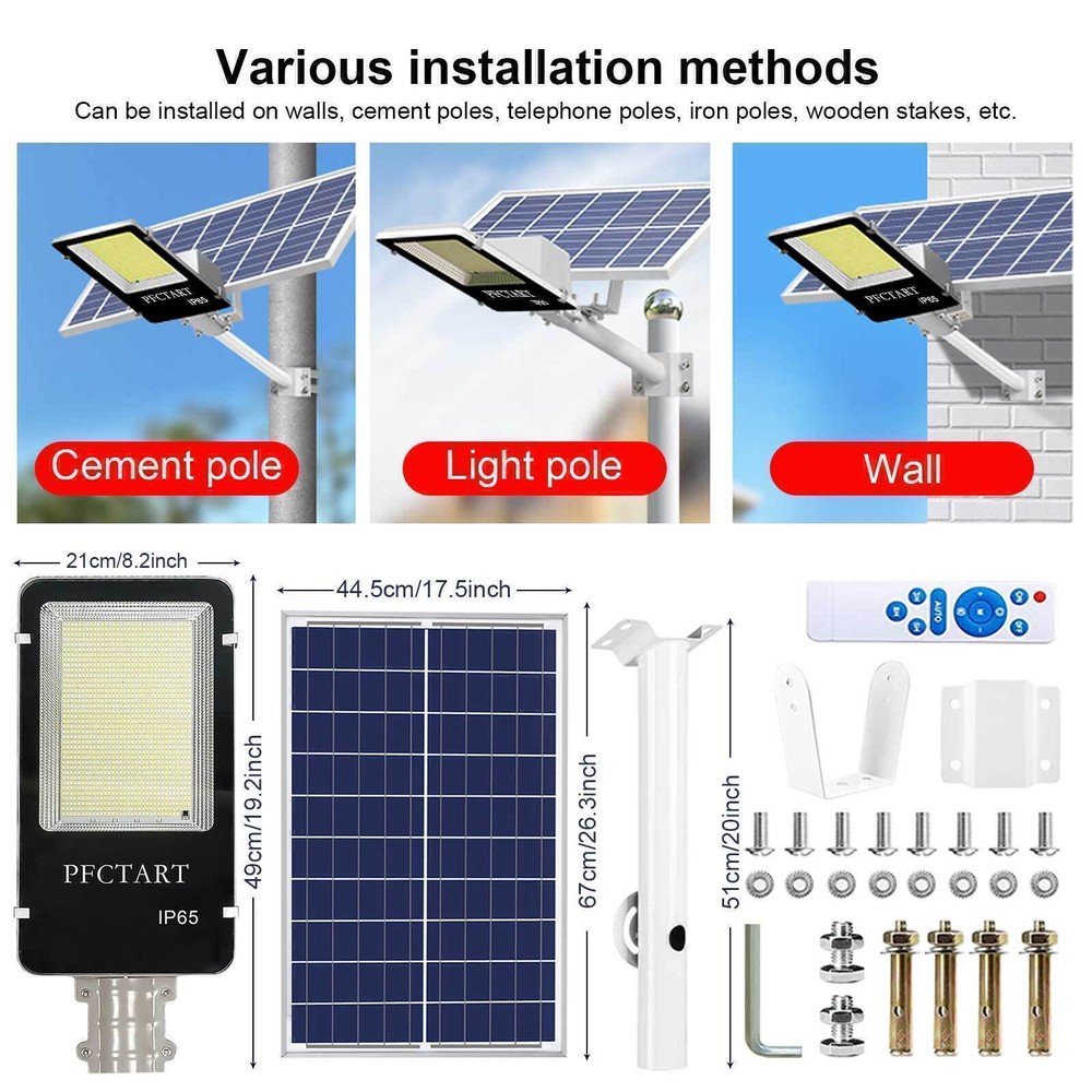 PFCTART Commercial 2000W Solar Street Light Outdoor IP67 Dusk-to-Dawn Road Lamp 99.99 USD Free shipping Commercial Solar Street Lights Outdoor Dusk to Dawn Solar High Bright Aluminum 99.99 USD Free shipping PFCTART Commercial 2600W Solar Light Outdoor Motion Sensor Parking Lot Lights 110.19 USD Free shipping 9900000000LM 1000W Commercial LED Solar Street Light Dusk to Dawn Road Lamp+Pole 74.94 USD Free shipping 99000000LM 2000W Outdoor Commercial LED Solar Street Light Flood Light Road Lamp 94.89 USD Free shipping PFCTART 99000LM 2000W Watts Commercial Solar Street Light Parking Lot Road Lamp 99.99 USD Free shipping 990000000000LM 3000W Watts Commercial Solar Street Light Parking Lot Road Lamp 115.99 USD Free shipping NEW 8000W Commercial Solar Street Lights Outdoor Dusk to Dawn Super Bright 99.99 USD Free shipping 10000000LM 2000W Commercial Solar Street Light LED IP67 Dusk-Dawn Road Lamp+Pole 65.99 USD Free shipping New Commercial Solar Street Lights Outdoor Dusk to Dawn Solar Security Light US 85.9 USD Free shipping 1600W Commercial Solar Street Light IP65 Dusk To Dawn Road LED Lamp+Remote+Arm 56.99 USD Free shipping 10000000LM REAL 2000W Commercial Solar Street Light LED Dusk-Dawn Road Lamp+Pole 59.0 USD Free shipping 〓Add To Favorites And We Will Give You Extra Discounts! 〓SHIP From US Local Stock 〓FAST & Free, 1-7 Days Arrival 〓FREE Return, Seller Pay!! 〓QUICKLY Reply within 24 Working Hours 〓 MOST orders ship within 2 business day with Tracking Number 〓 ANY PROBLEM please email us before feedback, thanks! Specifications: ★【Super Bright】 Equipped high quality 2835 SMD LED beads;Provides over 2000W light 99000000 Lumens of brightness and reaches 200-300m² illumination range ;No struggle to see in dark places;Built-in 3.2v-13.5Ah large capacity lithium battery with a long life of 50,000+ hours;Working time is up to 20 hours after 4-6 hours fully charged,about 72 hours in dim mode.;Long-lasting and highly efficient solar panels,fast charging and high conversion rate ★【Dusk to Dawn Sensor & Remote Control】 Built-in smart sensor,lights will turn on automatically at dusk, and turn off at dawn. Upgraded Remote Control -ON/OFF Function;Auto Mode- automatically lights up at night,automatically turns off during the day;Timing function-3H,5H,8H ;.Full / Half brightness mode;Brightness increase /decrease mode; ★【Easy to Install】 The kit contains the installation accessories set. You can effortlessly mount them on a tree, pole, balcony, wall, or any desired outdoor spot. These solar powered street lamps can be instantly mounted as long as there is a wall or a pole. ★【Durable&Sturdy&Maintence-free 】 Thickened die-cast aluminum case;IP65 waterproof rating; Dust-proof, rust resistant, corrosion resistant, and bad weather resistant; Designed to withstand any severe weather condition, including snowstorms and hurricanes, ultra reliable;Cost savings;No need to run pesky wires under your lawn, and no batteries that need replacing at the most inconvenient times.Safe-less risks of fires and burns; Environmentally friendly; ★【Widely Used】 Ideal for Plaza, Park, Garden, Courtyard, Street, Walkway, Pathway, Campus, Farm, Perimeter Security etc;Also can be used in Urban roads, industrial areas, residential areas,Elegant design,it will add a nice touch to your outdoor space;an excellent choice for any outdoor Package Include: 1 x Solar Lamp 1 x Solar Panel 1 x Remote Control 1 x Accessories Notice: Please allow 1-3cm error due to manual measurement and make sure you do not mind before ordering. Please understand that colors may exist chromatic aberration as the different placement of pictures