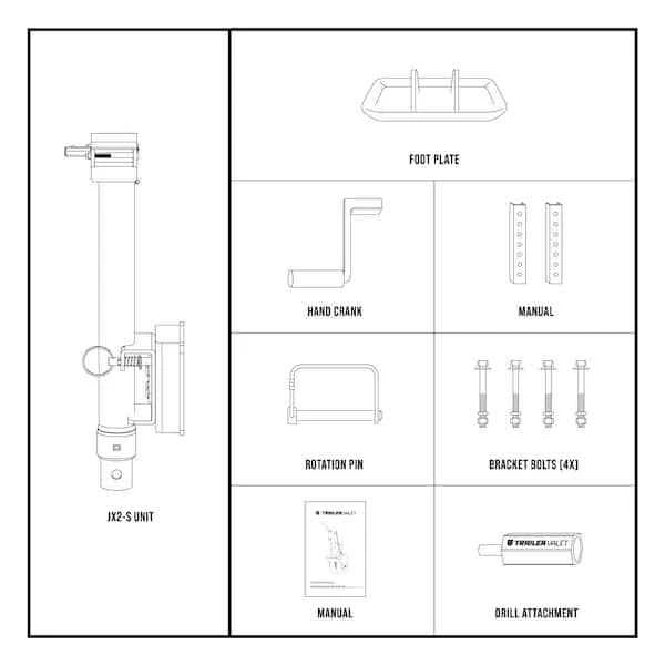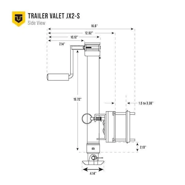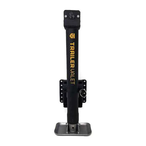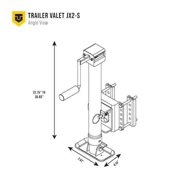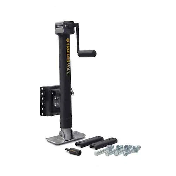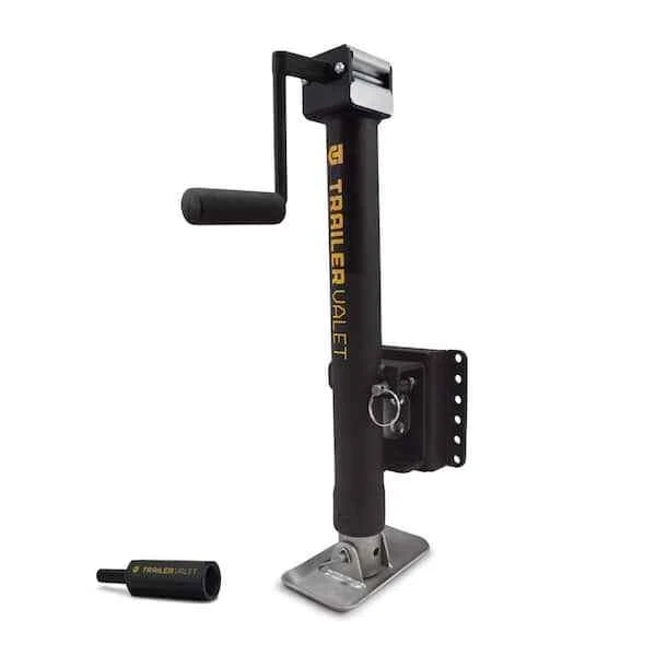 It's time to replace your trailer's jack with something better, faster, and stronger: the Trailer Valet JX Side Mount Jacks with Wheel. Although they can raise and lower with the built-in manual crank, they have a faster option: you can use any 20-24V compact drill to work these trailer jacks. Patented, internal gear material delivers better efficiency and less heat retention. The protective, smooth-gliding sleeve fitting prolongs the life of these aftermarket trailer accessories. These Trailer Valet jacks add a weather-resistant shield and wrinkle powder coating for long-lasting outdoor protection. Includes strong pipe-mount bracket and trailer-jack drill attachment. Retracted Height: 23 inch. Extended Height: 37 inch. Total Extension: 14 inch. NOTE: Using the Wheel Attachment instead of the Footplate reduces the the static weight capacity to 1,200 lbs.