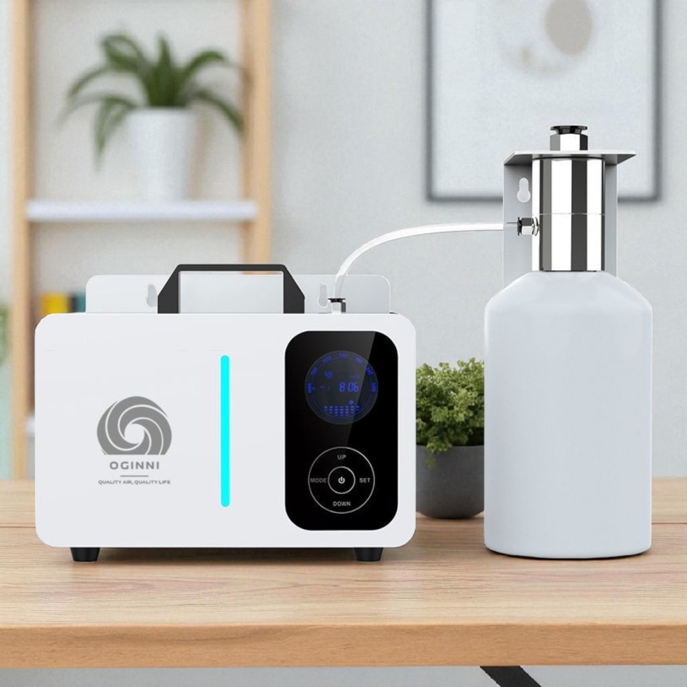 Large Area HVAC Scent Diffuser with 2000 mL plastic cannister. It's same as Museum360/ Presidential/ Aroma360/ Hotel Collection 6500ft²+ Experience the luxury of whole home scenting. The Scent Diffuser allows you to scent with ease and efficiency with its HVAC system connection, resourcefully covering multiple areas at a pre-selected scent concentration level. Manage when scenting occurs with its easy-to-use internal digital timer. Utilizing cold-air diffusion technology, the Diffuser turns fragrance oil into a dry nano-mist. With this method, scent stays suspended in the air longer and has better coverage. Using no heat or water, it preserves the therapeutic properties of fragrance oils without altering their smell. This type of advanced atomization technology is residue free and safe for pets, children, artwork and furniture. Supplement large spaces, such as entire homes, hotel floors, and mall wings, with the HVAC Scent Diffuser. Key Features -Scents up to 6500 square ft and more -Built-in fan for consistent coverage -HVAC connection capabilities -Waterless, heatless technology -No residue -Safe for pets, children, artwork, and furniture -Programmable weekly timer that allows up to 5 unique operating periods -Dimensions: 10 ¼" x 6 ½" x 7 ½" -Adjust the Scent Intensity with Power Mode -Bluetooth & Wi-Fi capabilities DISCLAIMER : "Musuem360 and Presidential" are trademarks of Aroma360 LLC and Hotel Collections. Oginni Scents Store and its products are not affiliated with, endorsed by, or in any way associated with Aroma360™ and Hotel Collections or their trademarks.