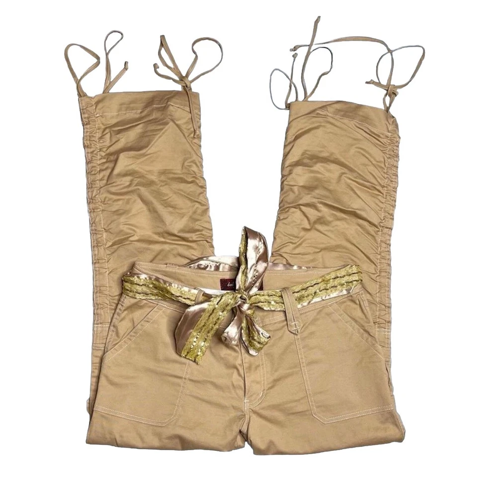 2000s Baby Phat Cargo Pants Women's Sz 9 Tan Gold Sequins Front Tie Popstar Y2K