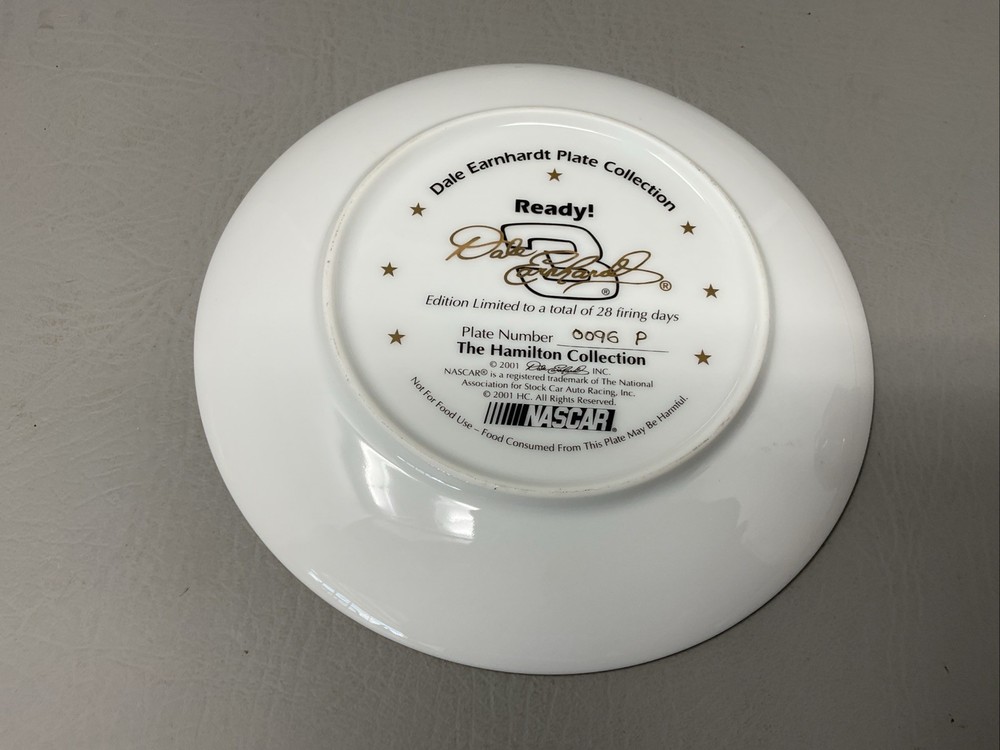 The 2001 Dale Earnhardt #3 Ready! Porcelain Plate is a decorative collector's item featuring the iconic Nascar driver. This round plate, produced by The Hamilton Collection, showcases a multicolor design with the distinctive hand-numbered features. Part of the Dale Earnhardt Hamilton collection, this 21st-century piece celebrates American culture and the legacy of one of the most beloved figures in motorsports history. Perfect for all occasions, this porcelain plate is a must-have for any fan of Nascar or Dale Earnhardt.