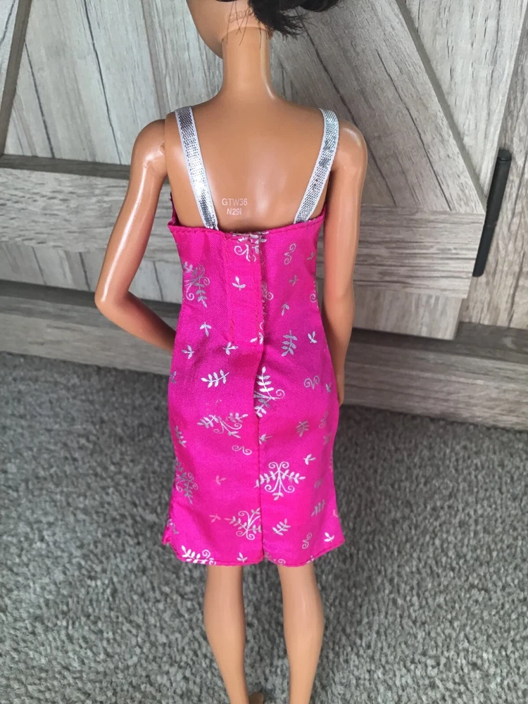 2001 Mattel Barbie Fashion Pack #68209 Barbie Doll Hot Pink Silver Dress Sleevel