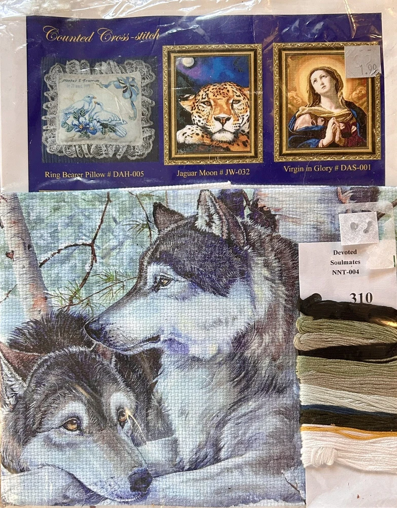 2001 Near North Treasures Collection Cross Stitch Kit ~ “Devoted Soulmates” ~ Kit Includes 14 Count Aida Cloth, Cotton Floss, Chart & Instructions ~ Kit Has Bern Opened, No Needle ~ See Photos