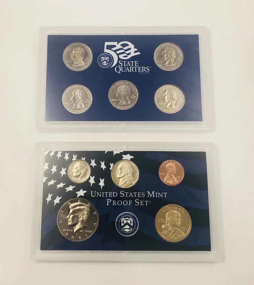 Presented is a 2001 S US Mint Proof Set Original Box & COA 10 Coins Clad Native American Sacagawea Dollar Kennedy Half 5 Washington Quarters Roosevelt Dime Jefferson Nickel Lincoln Cent ` Free Shipping of Additional Items Add additional items to your shopping cart before paying and they ship FREE. Use “Add to Cart” while shopping then check out once and additional items ship FREE. Items must be paid for in one payment. Please review the photos as they accurately depict the condition of the item you will receive. International orders will ship through eBay's Global Shipping Program and cannot be combined. The buyer is responsible for all taxes, duties, or other fees. Thanks for stopping by!