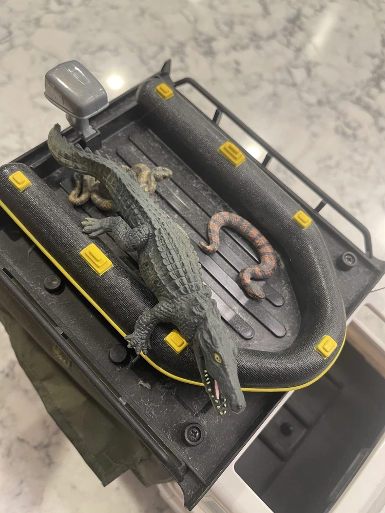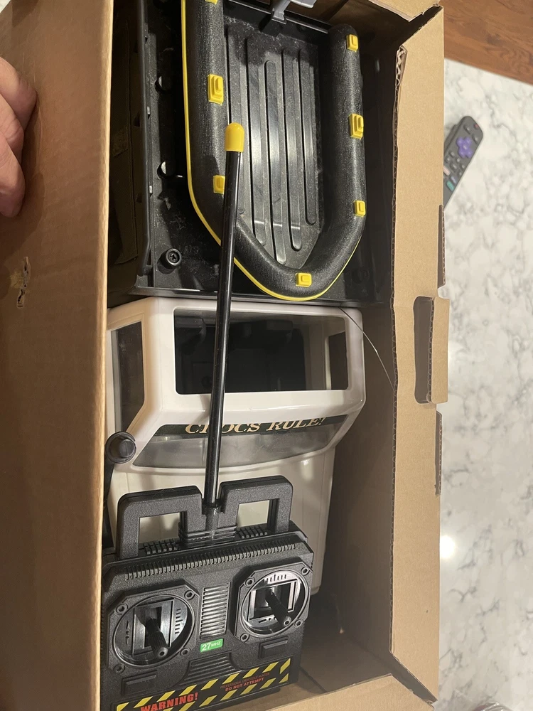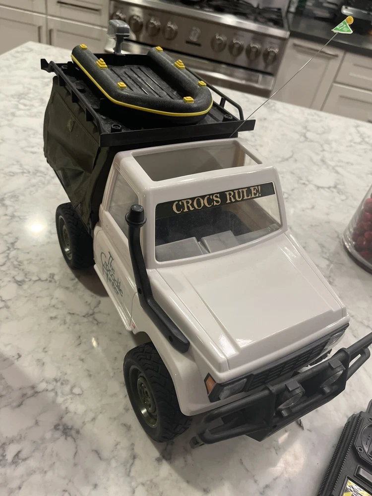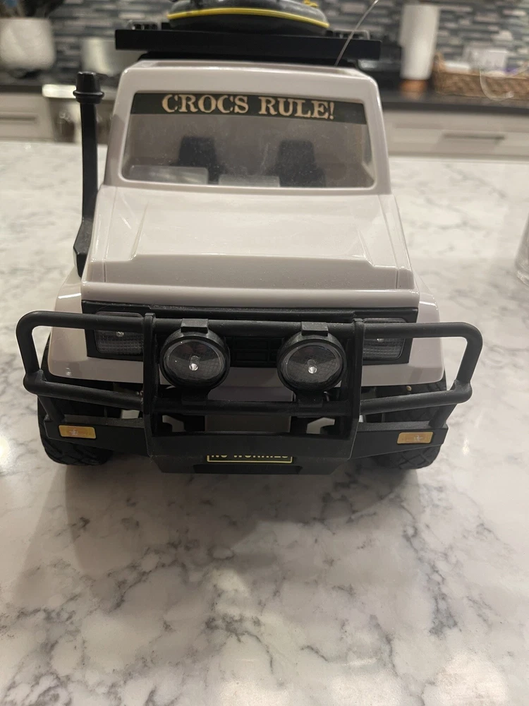 This is a rare and unique find for any collector or fan of Steve Irwin. The 2001 Steve Irwin The Crocodile Hunter RC Truck from Radio Shack is a vintage toy grade model in a 1:12 scale. It features a white color and is a replica of a Land Rover. The truck is recommended for both off-road and on-road use and requires almost ready assembly with some additional accessories. The truck's characteristics include rarity and it belongs to the product line of Steve Irwin. The motor type is brushed and the fuel type is electric. This RC truck is perfect for those who love toy grade models and want to add a rare piece to their collection. Untested. Looks like it wasn’t used much. Missing the Irwin figure.