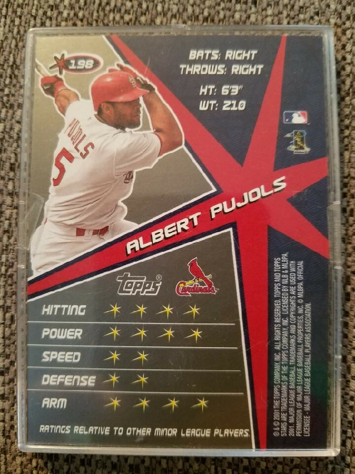 2001 Topps Stars Albert Pujols #198 Rookie Card — BCCG 10 The Pujols rookie. One of the greatest hitters in baseball history — 700+ career home runs, 3x World Series champion, 2x NL MVP. This is his first year in the hobby, and the Stars parallels are among the sharper-looking Pujols RCs from 2001. Graded BCCG 10 by Beckett — presents beautifully in the slab. Sharp corners, clean surface, strong centering. A great entry point into a graded Pujols RC without paying PSA 10 prices.