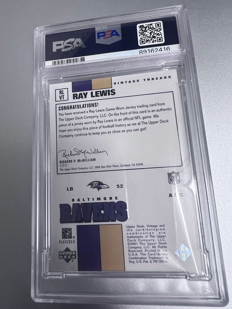 2001 Upper Deck Vintage Vintage Threads Ray Lewis #RLVT HOF Game worn jersey Brand new- I personally had this graded XXX / XXXV