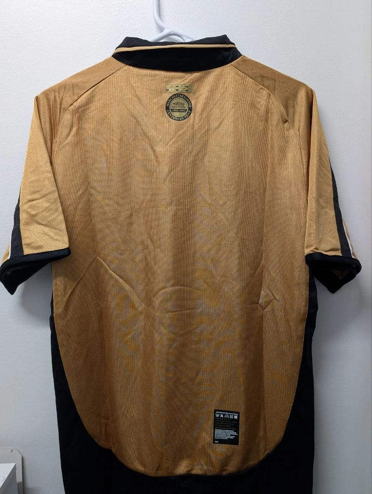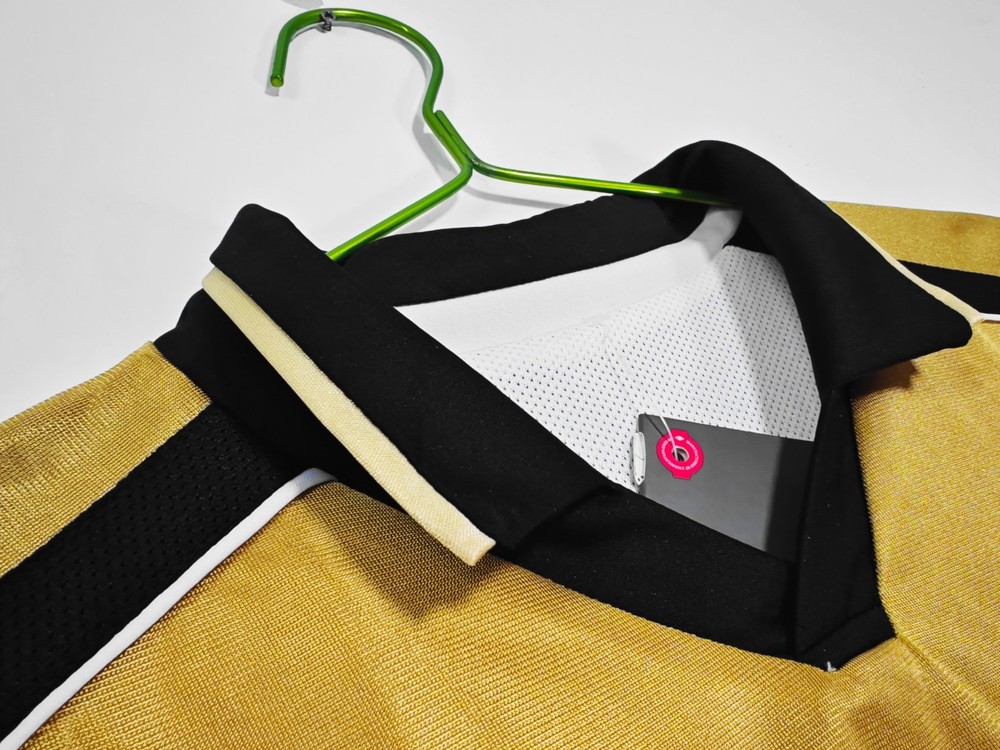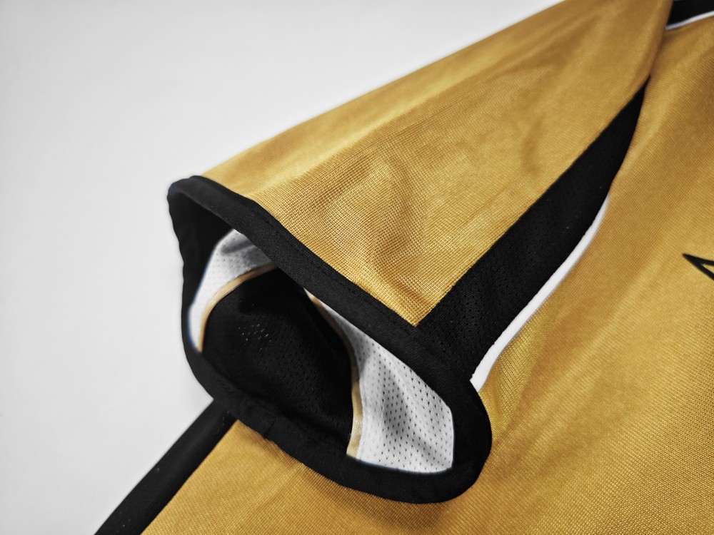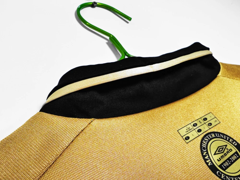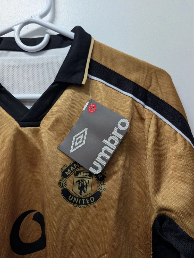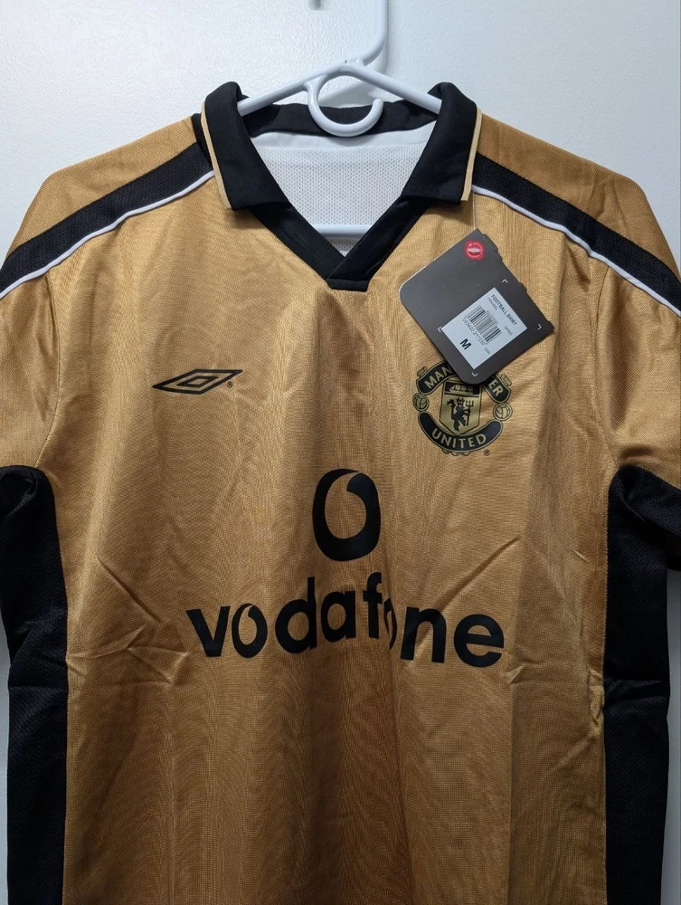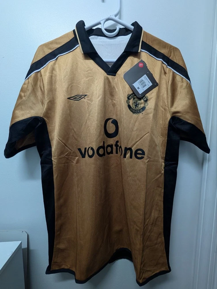 The 2001-02 Manchester United Retro Vintage Football Jersey by Umbro features the iconic Vodafone sponsorship. This gold jersey is a classic piece for any Manchester United fan or collector, representing the team's historic colors and design. Made for men, this jersey is a must-have for any soccer enthusiast looking to show their support for one of the biggest clubs in English football.