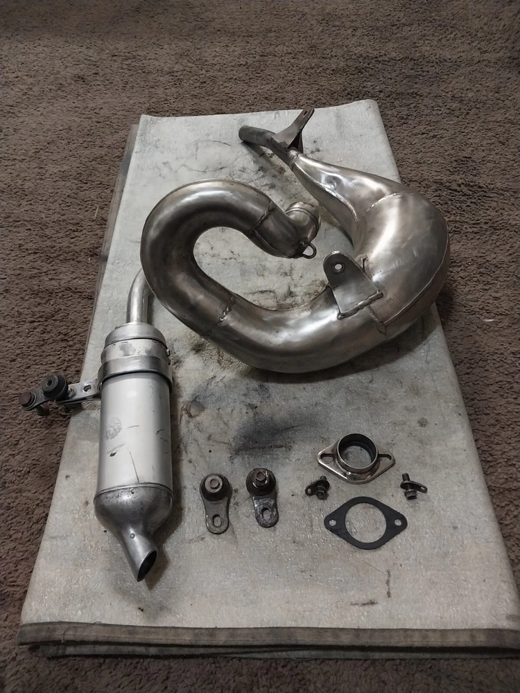 2001-2005 Kawasaki KX85 FmF Exhaust + Silencer In good condition Small dent on header pipe Almost all there to mount besides springs and few bolts