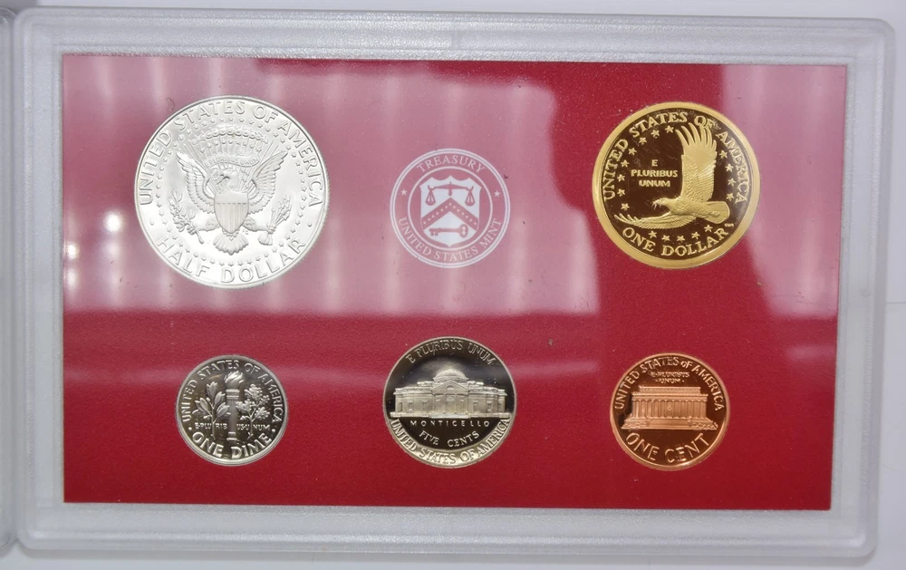 1957 US Proof Set 5 Coins Red Acrylic Display in Original Packaging