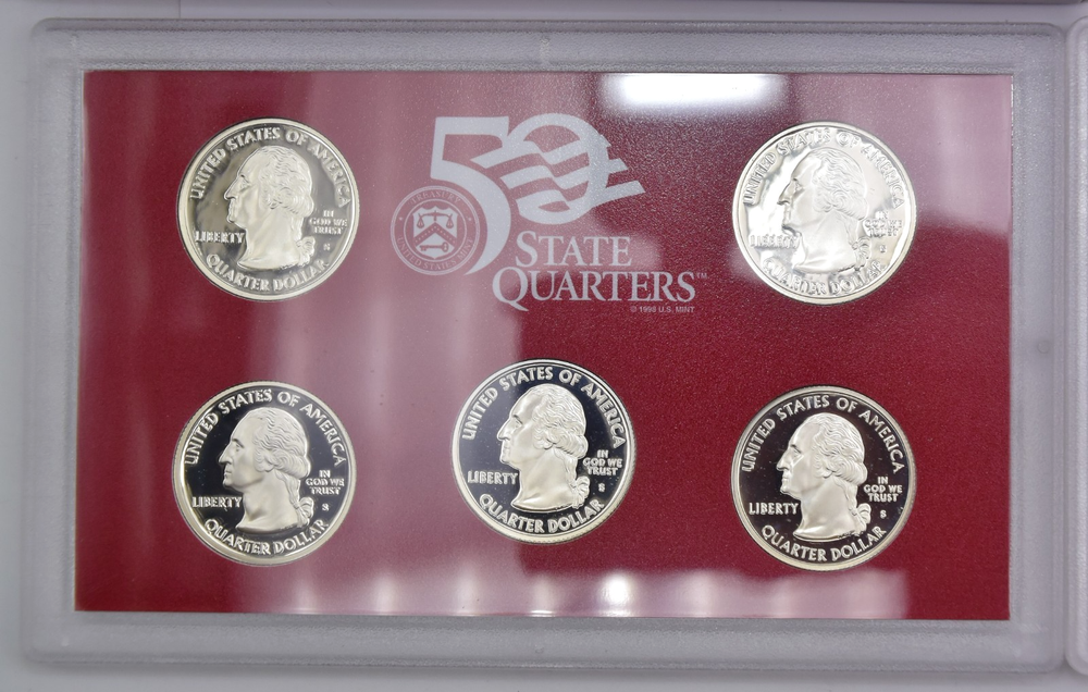 You are bidding on.... 2001-S US Mint 10-Coin Silver Proof Set w/Box & Certificate of Authenticity ** You will Receive the Proof Set shown in the Photos ** - Each of the Five Proof State Quarters are struck in 90% Silver. - Proof Dime and Half Dollar are struck in 90% Silver. - Remaining Proof Denominations (Penny, Nickel & Dollar) are struck in their Standard Alloy. Two Case Set Includes: 2001-S 90% Silver Proof New York State Quarter 2001-S 90% Silver Proof North Carolina State Quarter 2001-S 90% Silver Proof Rhode Island State Quarter 2001-S 90% Silver Proof Vermont State Quarter 2001-S 90% Silver Proof Kentucky State Quarter 2001-S Proof Lincoln Cent 2001-S Proof Jefferson Nickel 2001-S 90% Silver Proof Roosevelt Dime 2001-S 90% Silver Proof Kennedy Half Dollar 2001-S Proof Sacagawea Dollar Please review all photos and notes prior to bidding. **YES WE DO COMBINE ORDERS ** If you would like us to combine your orders please hold off paying until we have done so. We normally combine orders within a few hours of the sale and typically add 50¢ to $1 for each additional auction won. For example: If you won three auctions with postage at $5 per auction, we would reduce your postage from (3 x $5) $15 to $6 or $7 depending on the size and weight of your three items. We will combine orders for up to five days from the date of your first auction won and then issue a final invoice for payment. On rare occasions because of the weight and size of the items won it could actually cost more to combine so in this case we would ship the items separately with no postal saving passed on however in most cases, we will note this in the auction prior stating that it cannot be combined. *** THANK YOU AND GOOD LUCK BIDDING *** If you have ANY questions about our auctions please email and we will reply as soon as possible but please note we are on the West Coast and it could take a few hours to respond. We only ship to the Continental United States so when shipping into Hawaii, Puerto Rico and Alaska, additional shipping fees could possibly be applied.