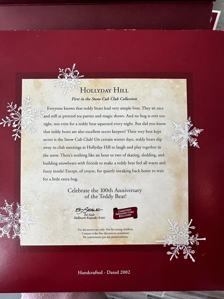 2002 Hallmark Keepsake Ornament Hollyday Hill 1st In Snow Cub Club Collection